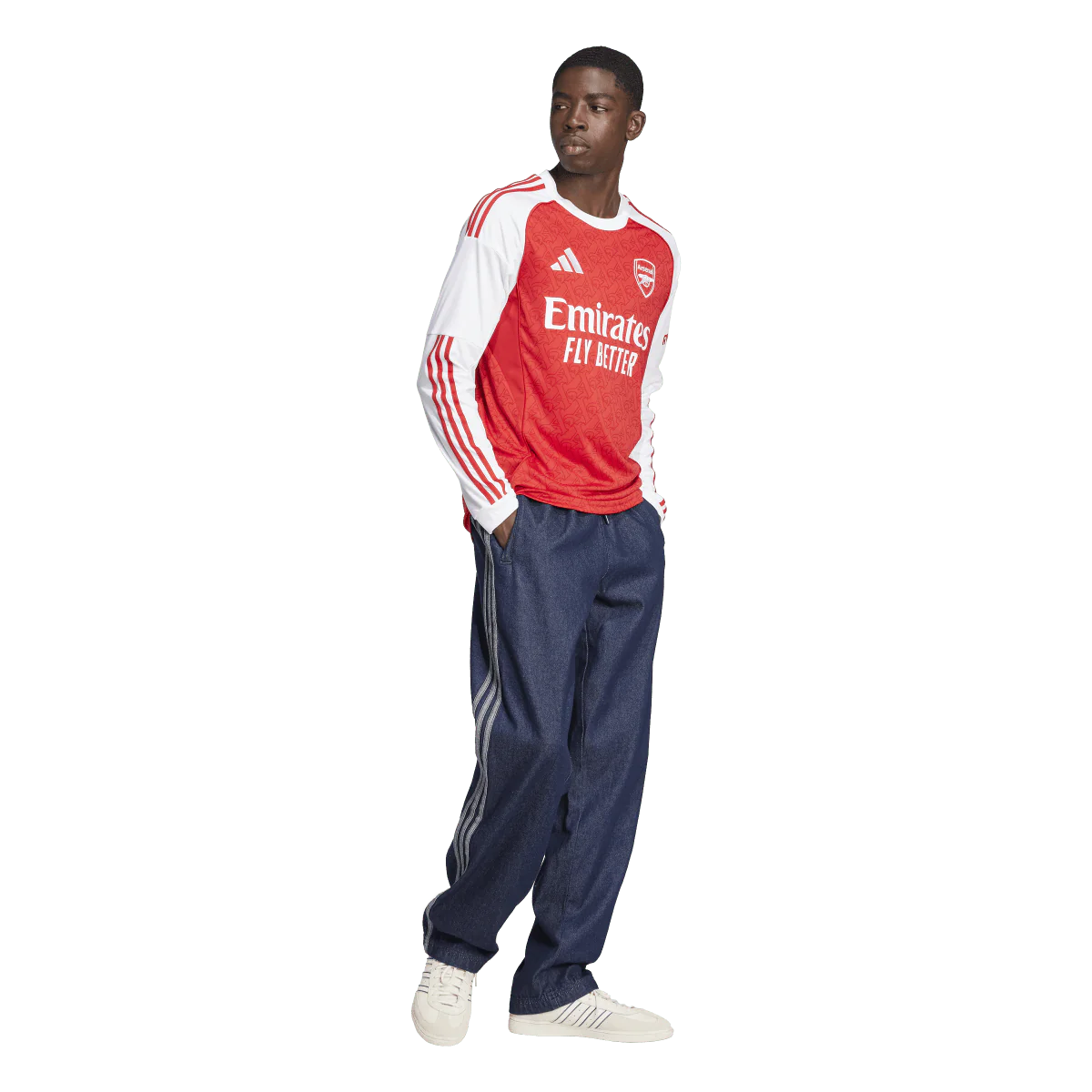 Red body. Long white sleeves. So far, so timeless. Look closely at this Arsenal home jersey from adidas, though, and you'll see club DNA flows beyond the colours. Repeated across the front and back, Gothic-style A's from a vintage team badge add a finishing touch that all fans will appreciate. Created for comfortable support, this football shirt comes with soft fabric and moisture-managing AEROREADY.