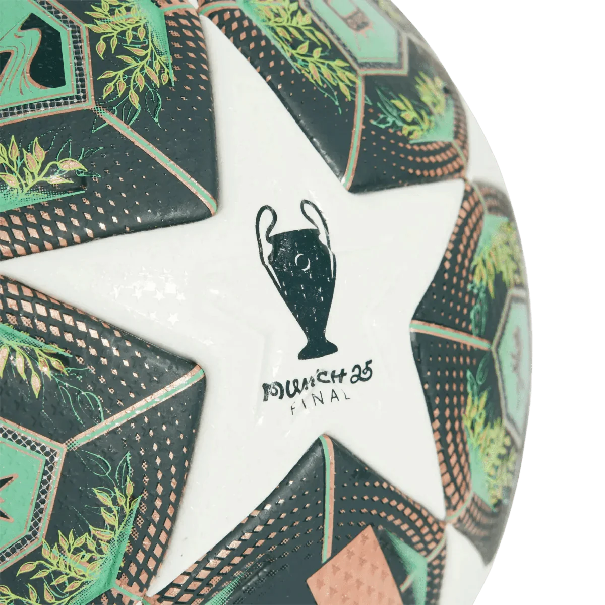 Clad in the greens of Munich's patinaed copper domes and picture-postcard backdrop, this adidas Pro ball is an elegant tribute to the 24/25 UEFA Champions League final host. Used during the knockout stages of Europe's most prestigious club competition, it's built with a high-grade butyl bladder and seamless cover for high-performance football.