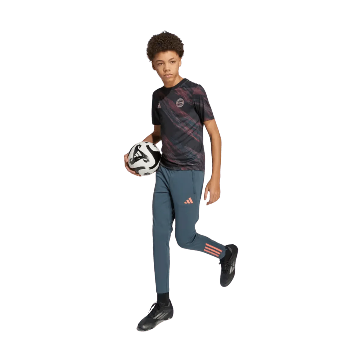 Celebrate 20 years of the iconic Allianz Arena in this juniors' FC Bayern pre-match jersey from adidas. Borrowing from the club's away kit look, bold graphics pay tribute to the stadium's vibrant colours during evening games. Behind the scenes, AEROREADY keeps you dry during the most intensive warm-ups. A club crest ensures you feel at home no matter how much effort you're putting in.