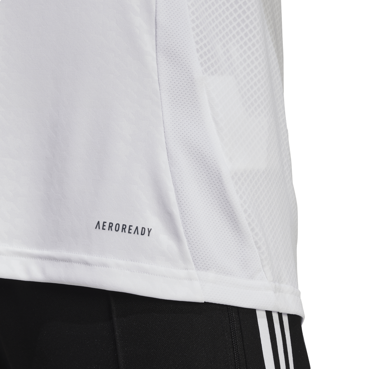 When adidas designed Real Madrid's home kit, they looked to the long-held traditions of the club's famous city. Inspired by the "chulapo" outfits worn at Madrid's annual San Isidro Fiesta, the houndstooth-style patterning on this football jersey gives it a dash of style. Also featuring moisture-managing AEROREADY and a embroidered club badge, this top is made for the fans.This product is made with 100% recycled materials. By reusing materials that have already been created, we help to reduce waste and our reliance on finite resources and reduce the footprint of the products we make.
