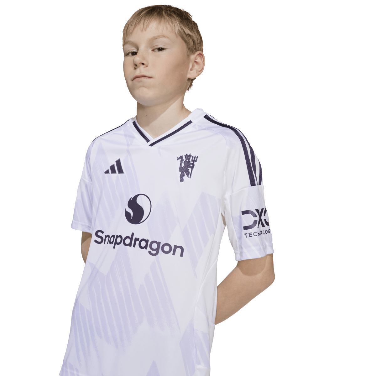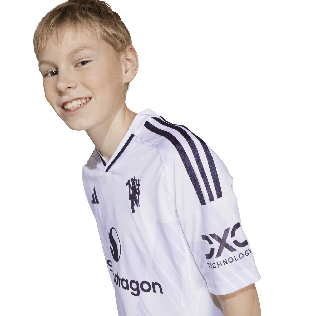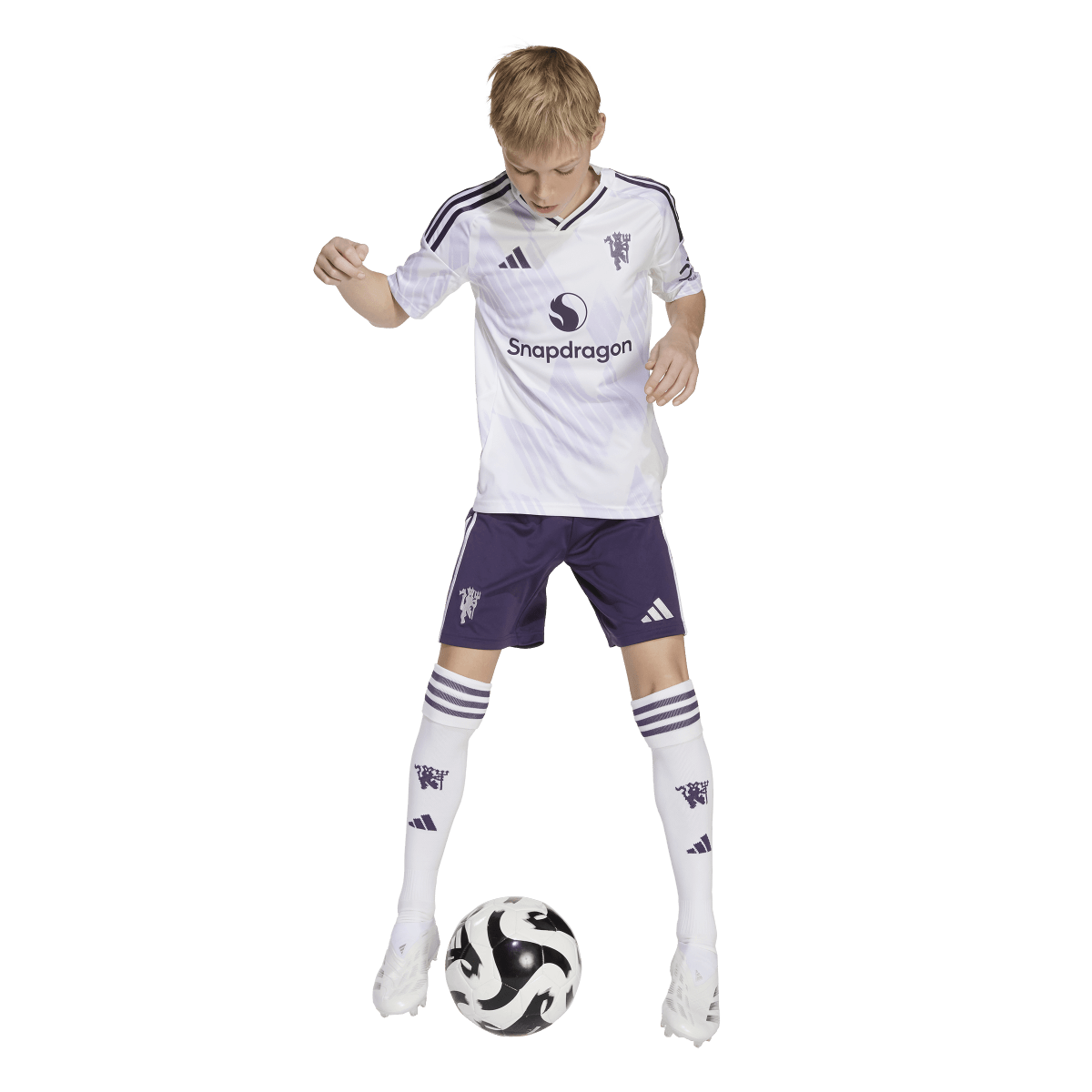 Inspired by Manchester United’s legendary early-'90s snowflake kit, the 2025/26 away jersey gets a fresh update for the next generation of fans. With icy white tones, flashes of purple and lilac, and a shimmering red devil crest, this youth-sized jersey is built for proud young Reds ready to show their colors.