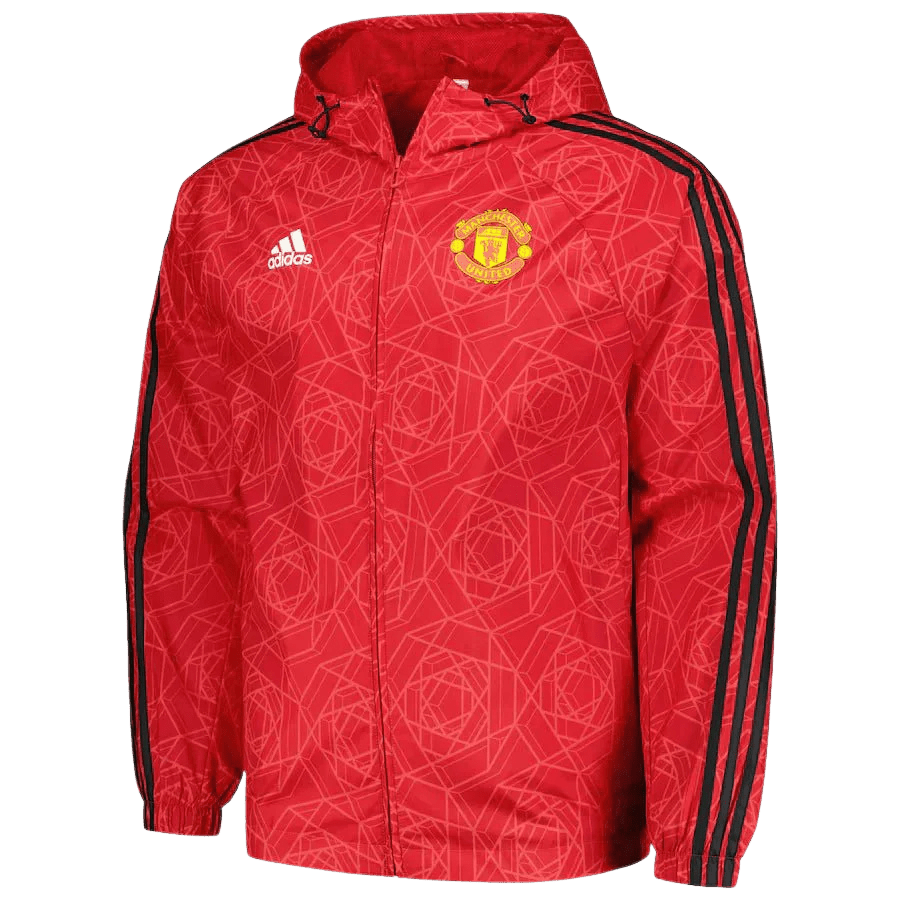 Manchester United are part of your identity. Show your support in this adidas soccer windbreaker. An ideal lightweight layer for when you're out and about, it will shelter you on breezy days. A printed club badge on the chest adds the perfect finish. Made with 100% recycled materials, this product represents just one of our solutions to help end plastic waste.