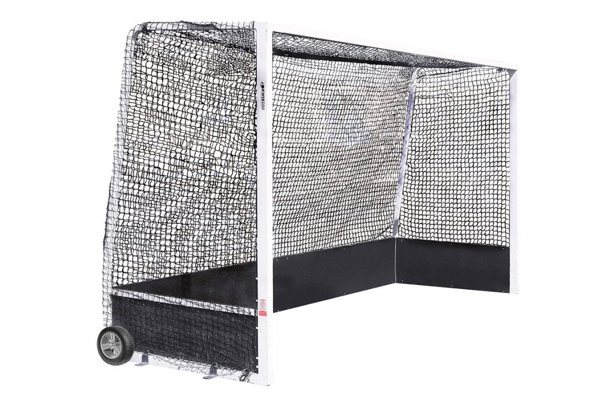 Bringing the same level of care and quality construction as we do with our soccer goals – the Official Field Hockey Goal with Wheels is designed to withstand all the shots sent from the scoring circle and beyond. This goal is built from an all-aluminum frame, poly backboards, and includes a 3 mm, black HTPP net.