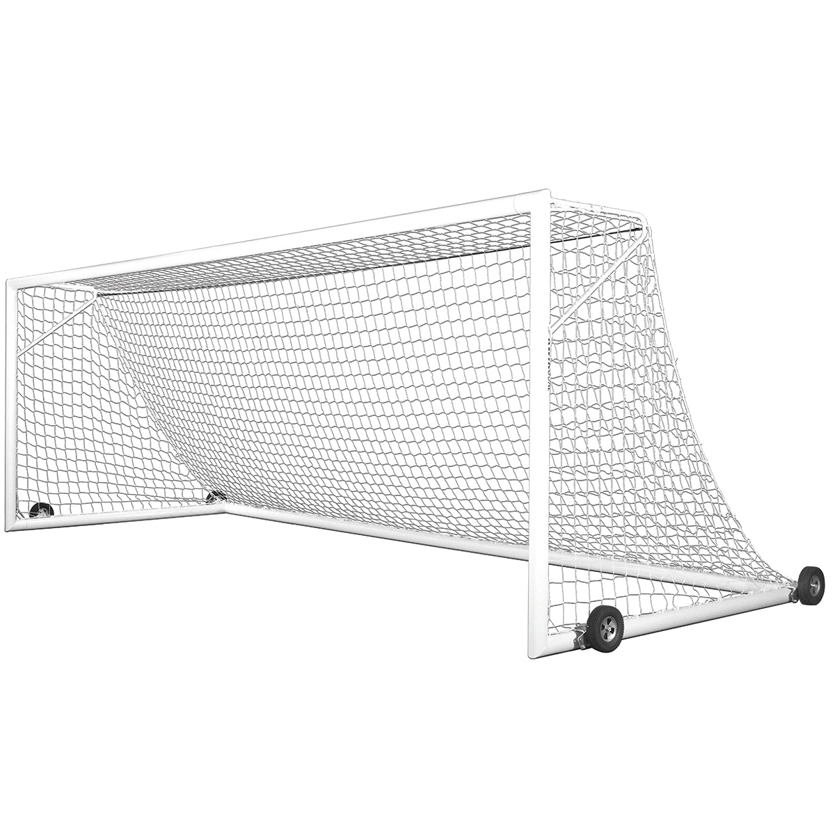 The 2B2001 Pro Premier European Match Soccer Goal meets NCAA and NFHS standards. The entire frame of the 2B2001 Pro Premier European Match Soccer Goal is 4 3/8" round aluminum, and the goal is all-surface friendly as the net clips into the Kwik Lock Net System around the entire frame. The 2B2001 Pro Premier European Match Soccer Goal includes 4 wheels per goal, increasing ease and safety of movement. Sold individually.