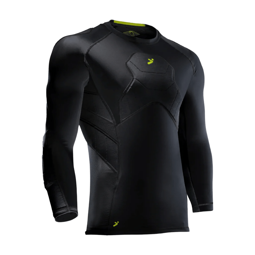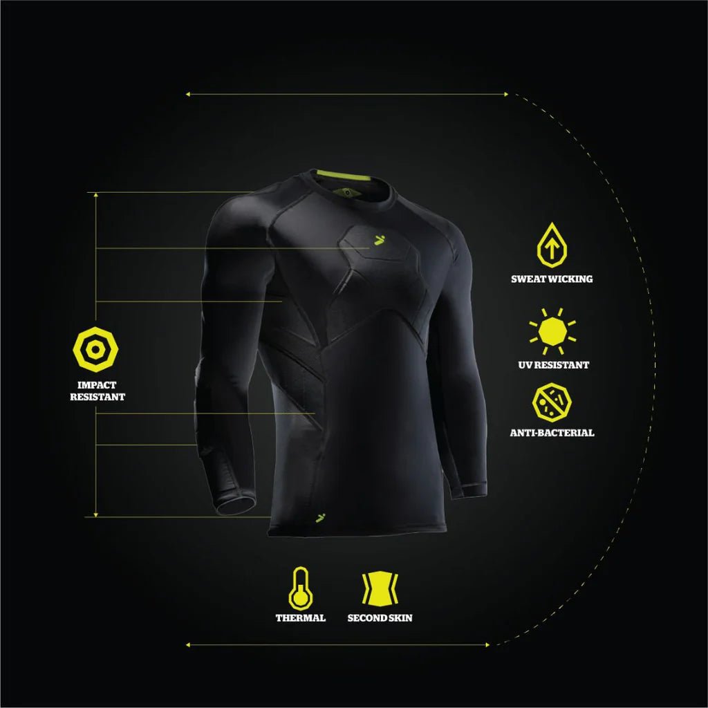 This BodyShield goalkeeper jersey is a technical 3/4 length undershirt armored with XRD® Extreme Impact Protection. This padded shirt provides light, flexible yet heavy-duty protection on all the areas exposed to impact when diving (elbows, shoulders, ribs).
