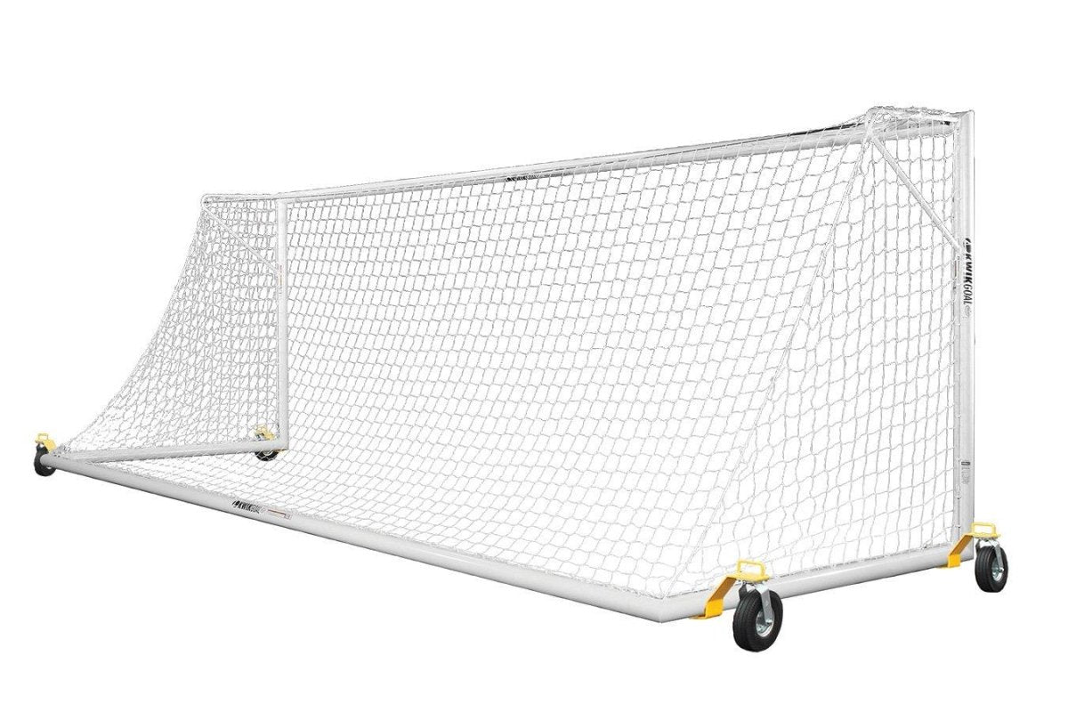 Professional and performance-driven. The Deluxe European Club Soccer Goal features an all-aluminum construction that meets NFHS regulations and is all-surface friendly. For safety purposes, this goal is engineered with the Kwik Lock® Net System and includes sturdy net clips for a completely secured net as well as four, removeable swivel wheels. The European-style backstays give this goal an international look.