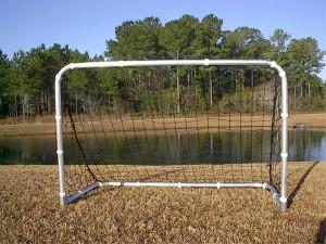 Pevo Small Soccer Goals: Constructed of 2” round aluminum tubing with durable aluminum castings. Includes net with bungee-ball fasteners and J-stake anchors.