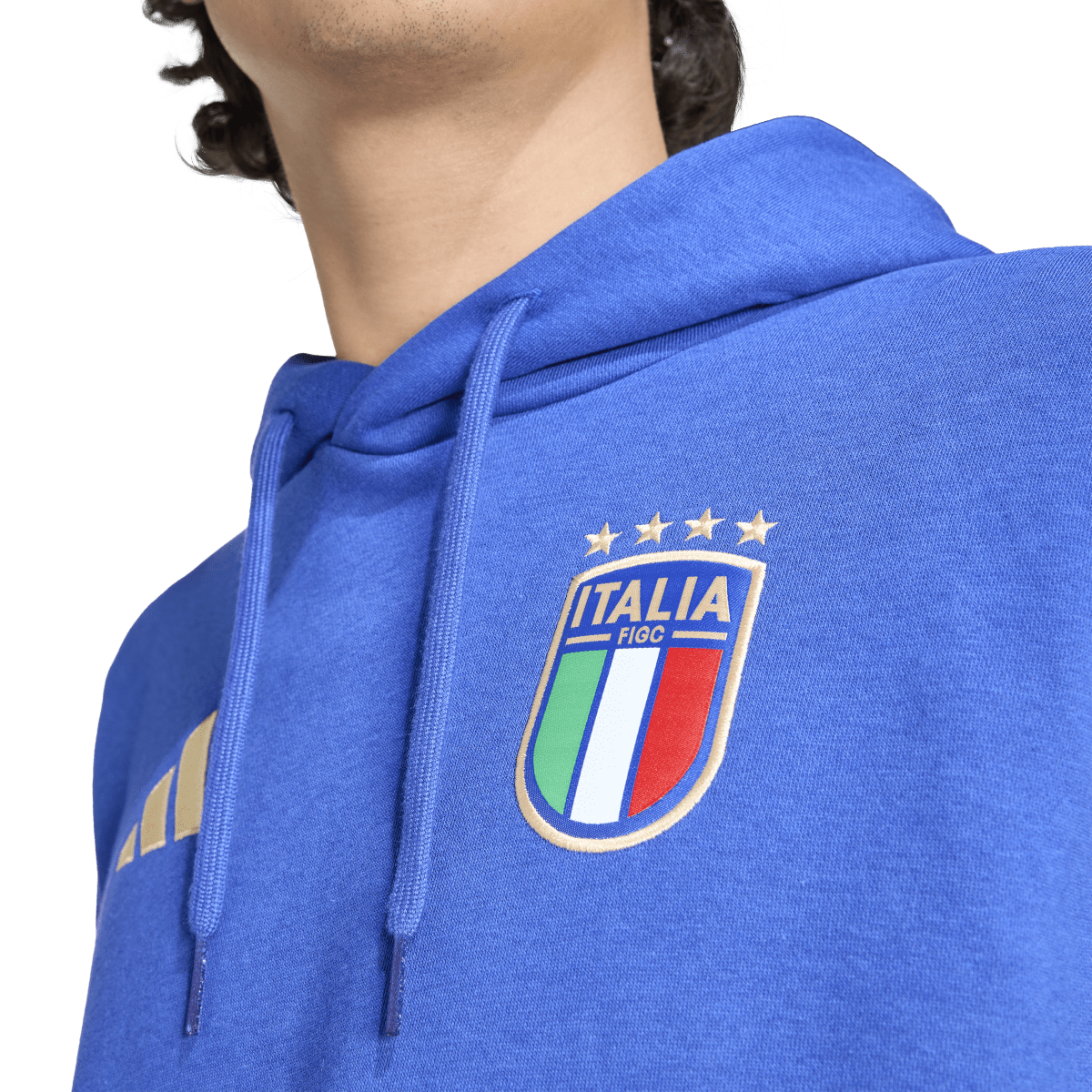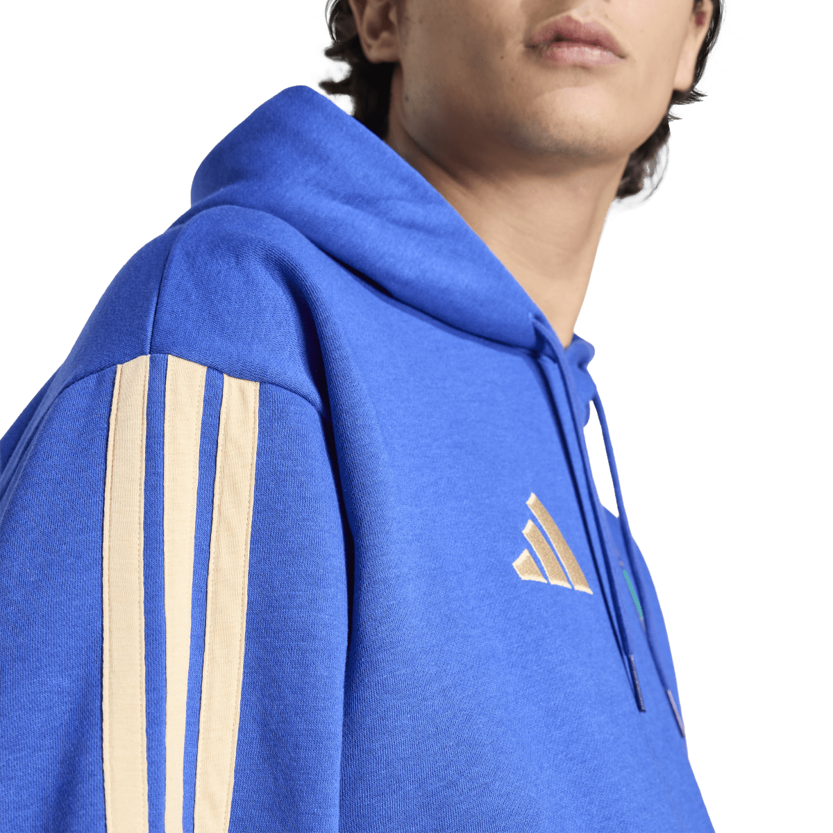 Embrace the world of soccer culture with the Italy DNA Fleece Hoodie, where modern design meets timeless style. Crafted for fans who live and breathe the beautiful game, this hoodie embodies the spirit of soccer with its clean, versatile look. Made from a soft fleece blend, its fabric provides warmth and comfort as you navigate your day. The drawstring and hood add a touch of practicality, allowing you to adjust the closure for a custom fit and coverage.