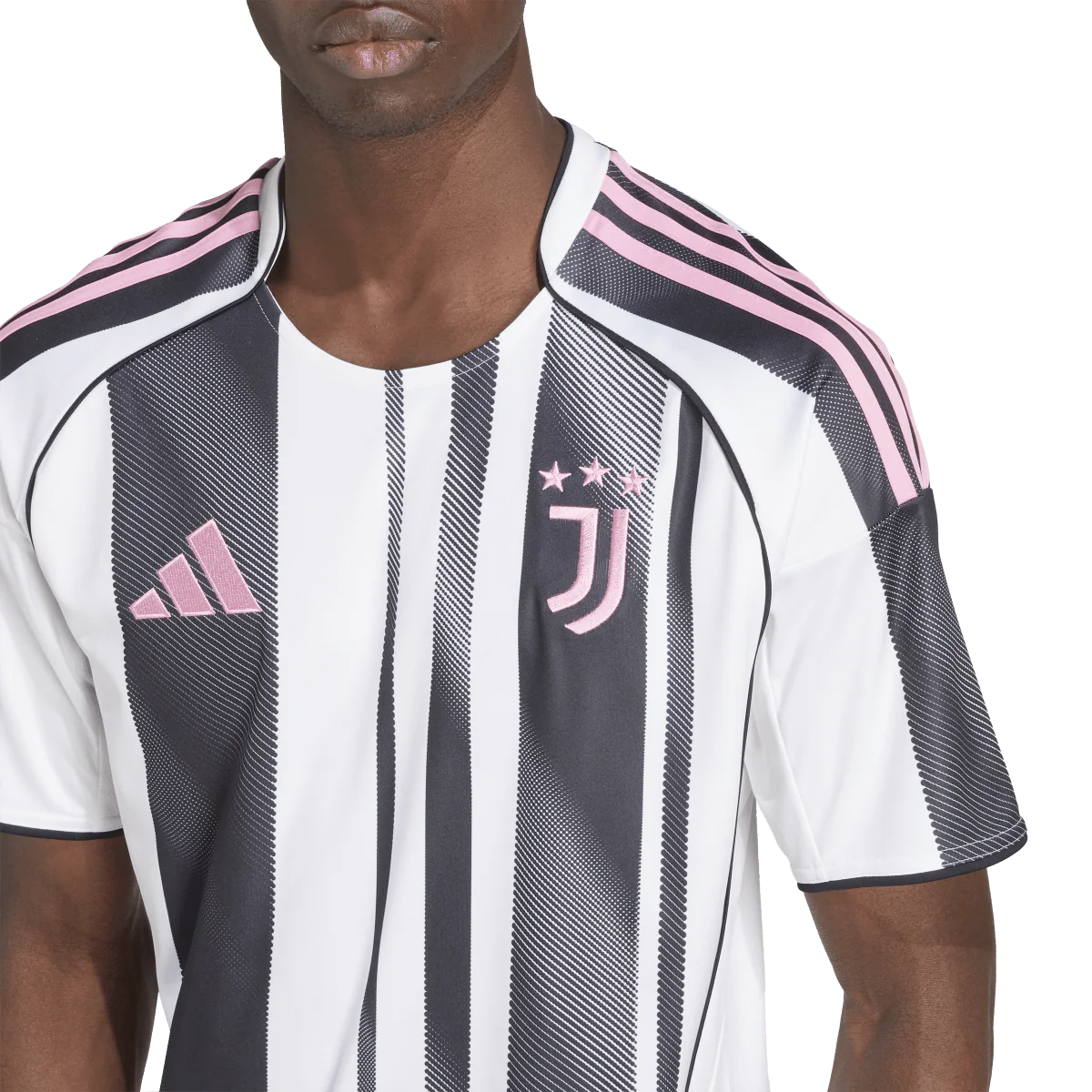 Football tradition with a twist. This adidas Juventus home jersey plays with the club's famous stripes to produce a design that really catches the eye. Created to keep fans comfortable, it teams moisture-managing AEROREADY with smooth interlock fabric. Finished in the club's timeless pink colours, an embroidered badge flashes your fandom.