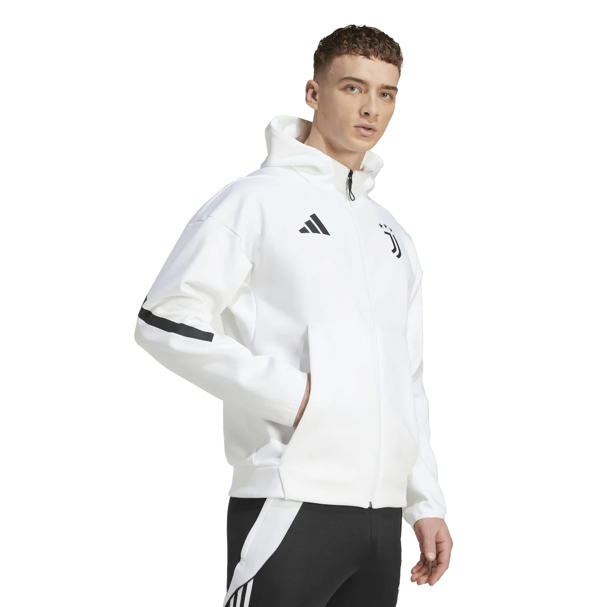 Stay focused on your beautiful game in this adidas football jacket. Created to be worn by players as they build up to big matches, it'll keep you comfortable with soft doubleknit fabric. On top of the spacious hood, a Juventus graphic completes a look that will make the Turin club's fans proud.
