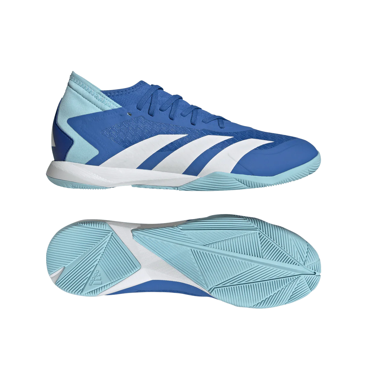 Top corner. Bottom corner. All the corners. adidas Predator Accuracy is crafted for goalscoring, so you know the ball will find the net. The fun's in choosing how it gets there. These soccer shoes have a breathable mesh forefoot that's finished with a durable toe cap to guard against wear. The grippy, non-marking rubber outsole ensures you dominate on indoor courts. Made with a series of recycled materials, this upper features at least 50% recycled content. This product represents just one of our solutions to help end plastic waste.