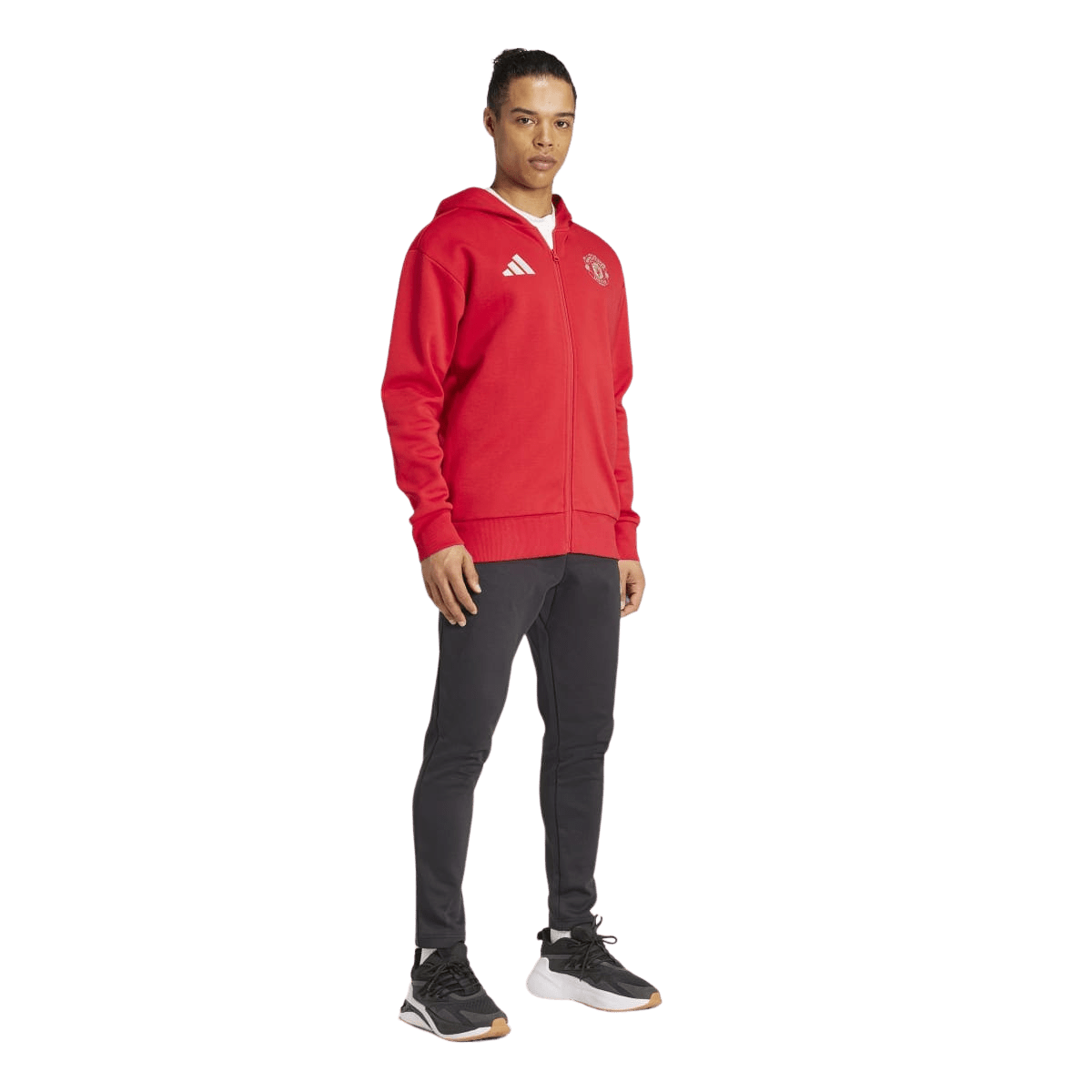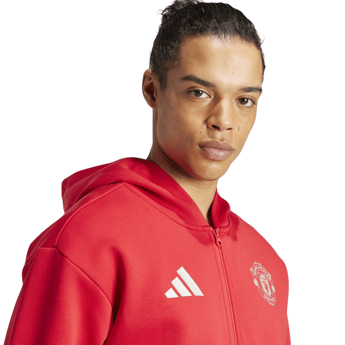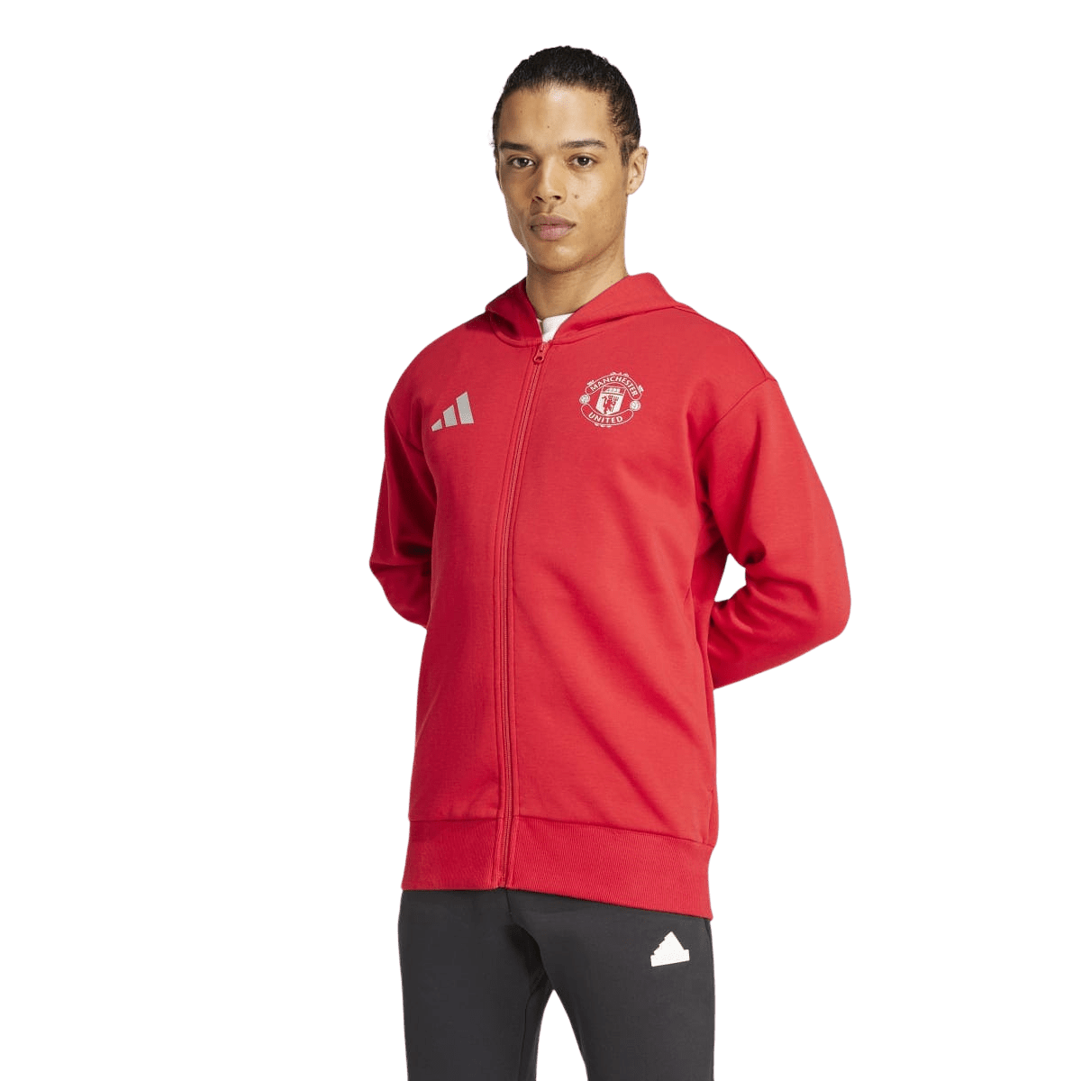 Manchester United pride comes to life in this adidas football jacket. The top players zip up before they head out of the tunnel on match days, its doubleknit construction keeps out the chill to ensure you're always comfortable in your colours. A printed club badge makes it clear where your loyalties lie.By choosing recycled, we are able to reuse materials that have already been created, which helps to reduce waste. Renewable materials choices will help us to remove our reliance on finite resources. Our products made with a blend of recycled and renewable materials feature at least 70% total of these materials.