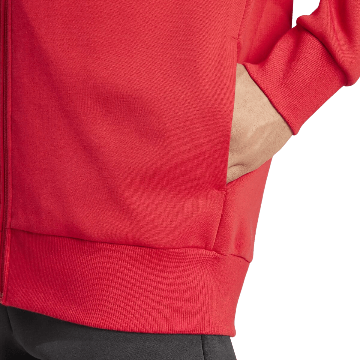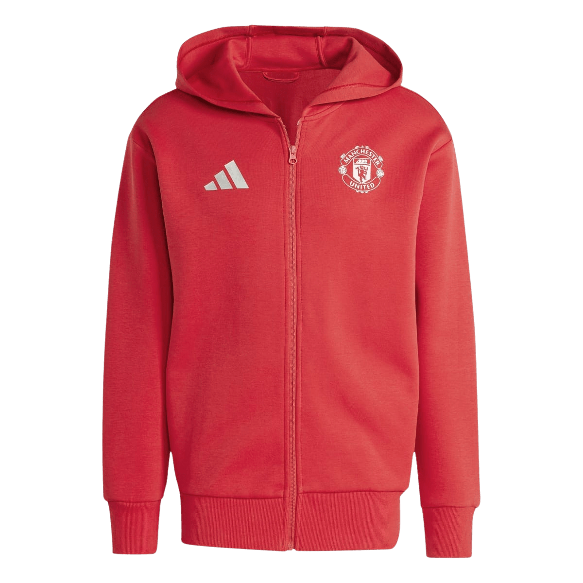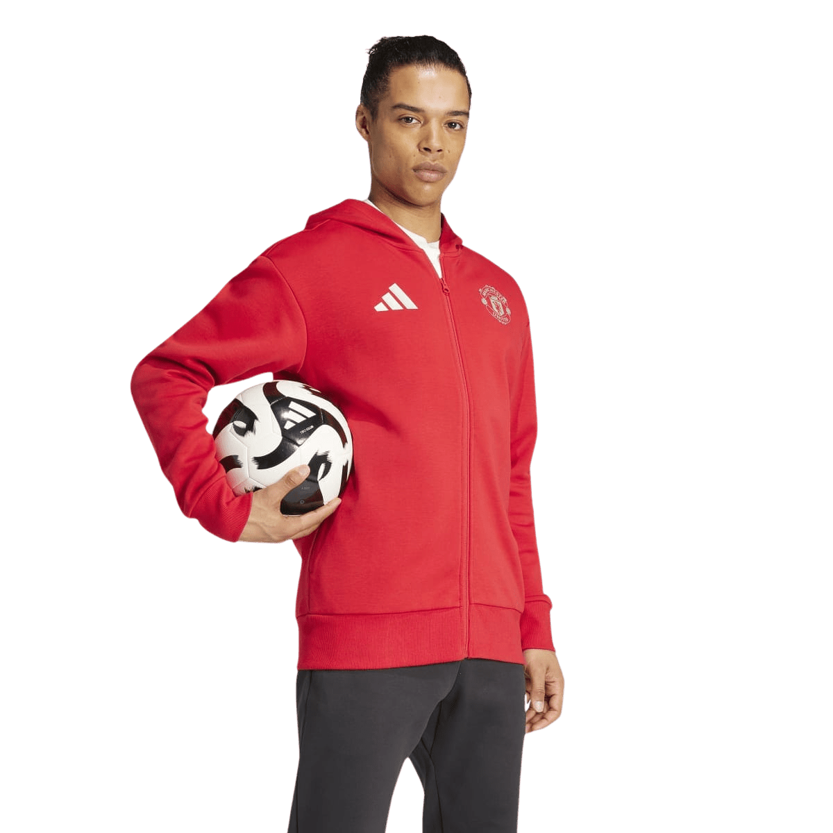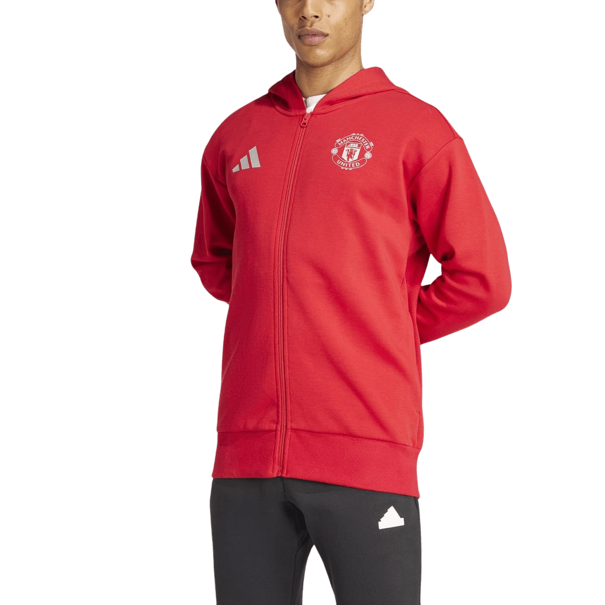 Manchester United pride comes to life in this adidas football jacket. The top players zip up before they head out of the tunnel on match days, its doubleknit construction keeps out the chill to ensure you're always comfortable in your colours. A printed club badge makes it clear where your loyalties lie.By choosing recycled, we are able to reuse materials that have already been created, which helps to reduce waste. Renewable materials choices will help us to remove our reliance on finite resources. Our products made with a blend of recycled and renewable materials feature at least 70% total of these materials.