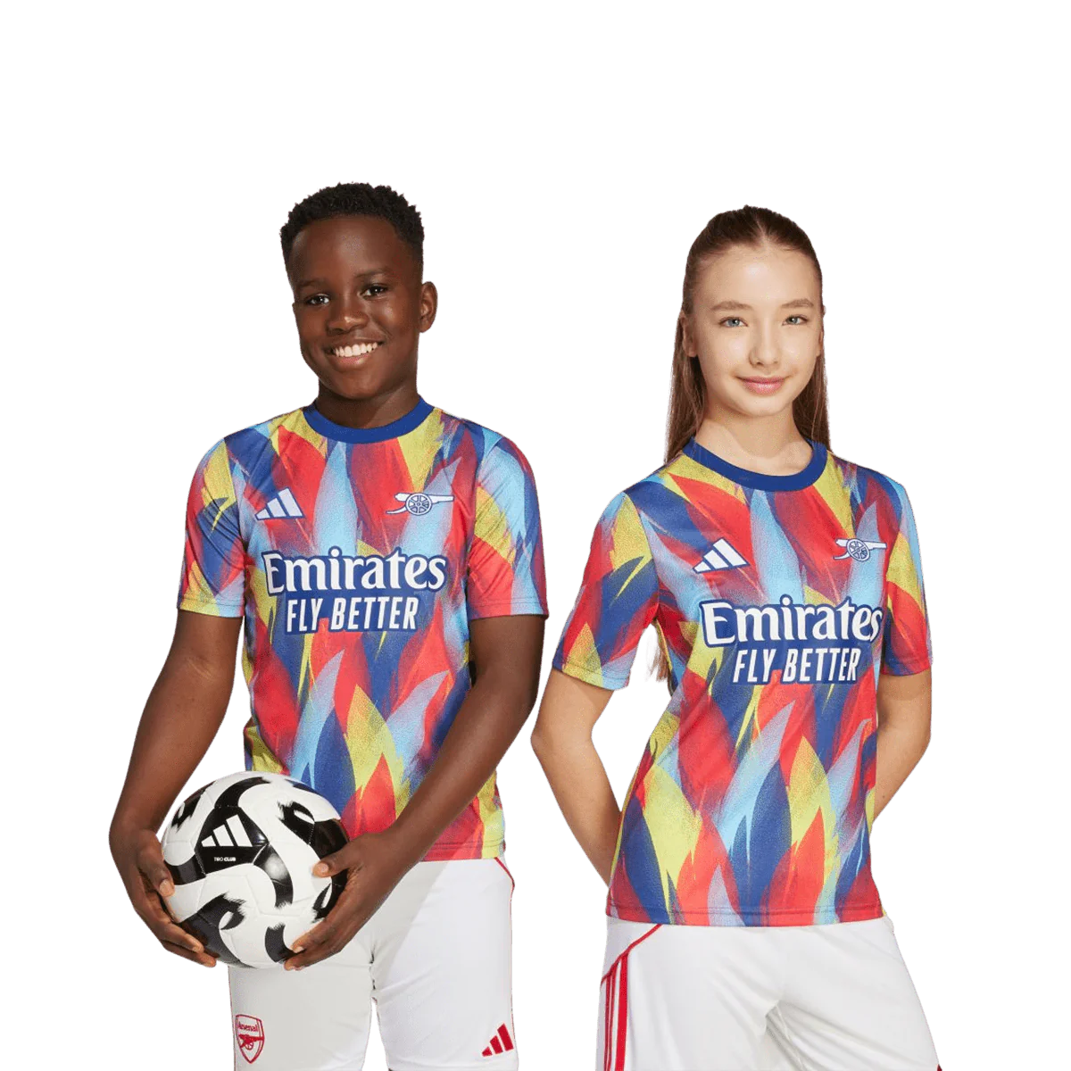 Engineered for young Arsenal fans, this adidas Pre-Match Jersey showcases the iconic 25/26 design worn by players during warm-ups. Featuring moisture-wicking AEROREADY technology to keep young athletes dry and comfortable, this authentic jersey combines performance fabric with official team details, allowing youth supporters to display their Gunners pride with professional-grade quality.