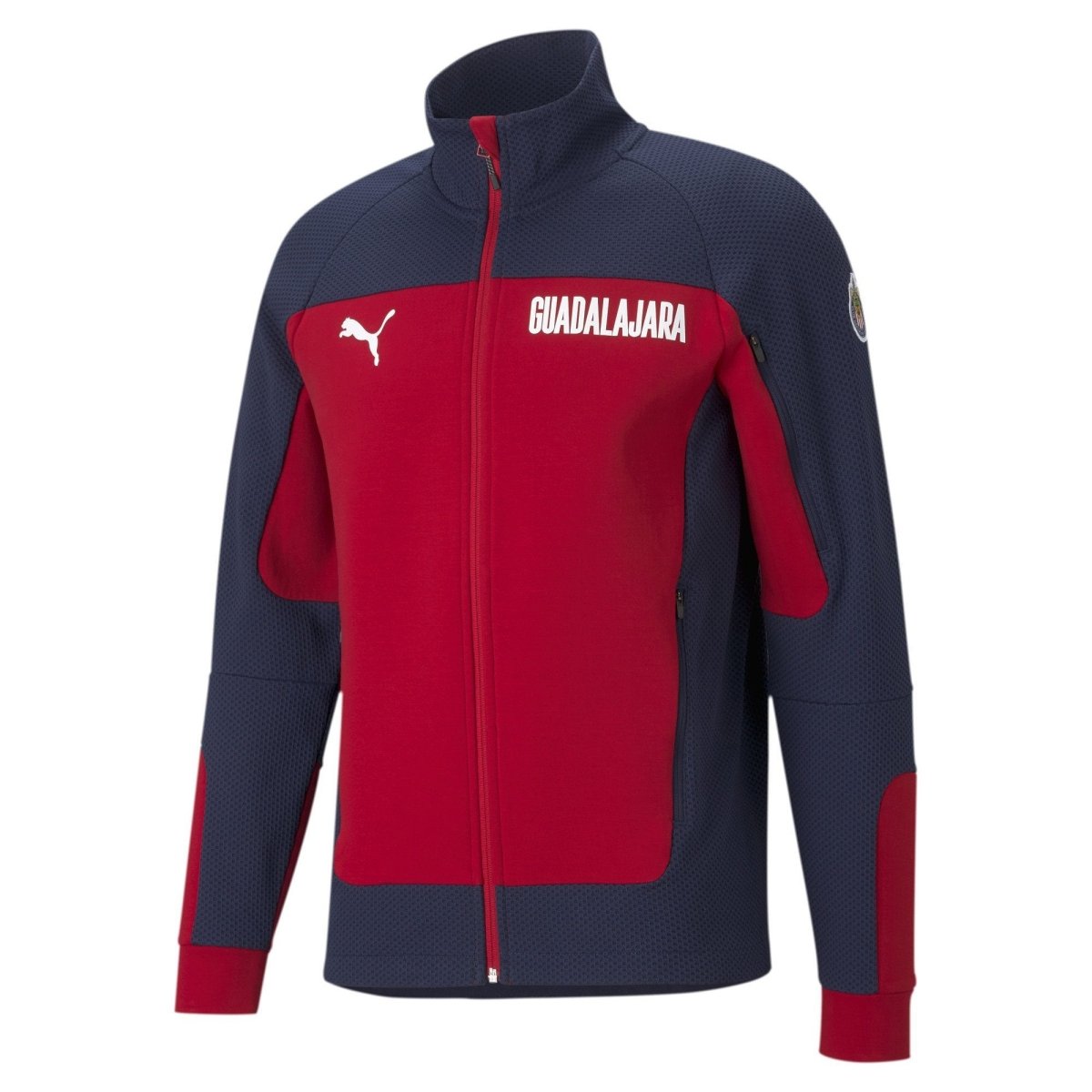 Puma 2021 Chivas Evostripe jacket - Navy-Red S Puma 2021 Chivas Evostripe jacket - Navy-Red Support your squad with style in the same jacket worn by your favourite footballers themselves. Perfect for the gym, stadium or everyday on-the-go wear, with performance-ready, moisture-wicking fabrics and an essential lifestyle silhouette, it's versatility and sleek, sporty style is unrivalled.