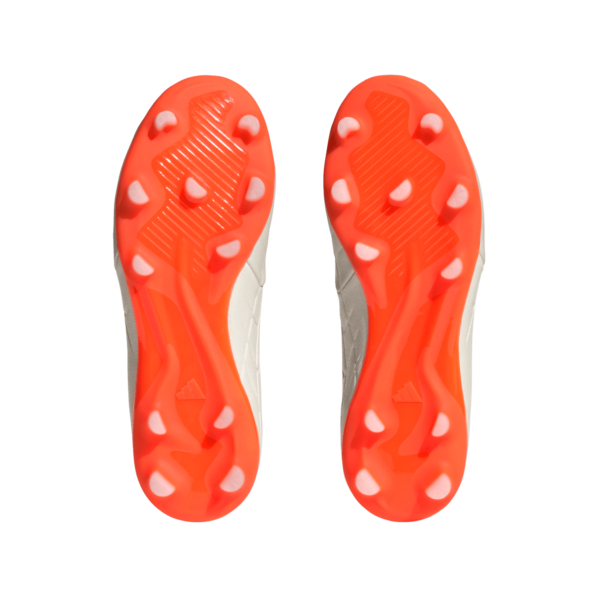 Created for football purists, these juniors' adidas boots combine a classic-inspired look with lightweight comfort. Stretched over layers of supple foam, the quilted leather forefoot delivers a cushioned touch. Underneath, high-traction moulded studs keep you a class apart on firm ground. Made in part with recycled content generated from production waste, e.g. cutting scraps, and post-consumer household waste to avoid the larger environmental impact of producing virgin content. 25% of the components used to make the upper are made with a minimum of 50% recycled content.