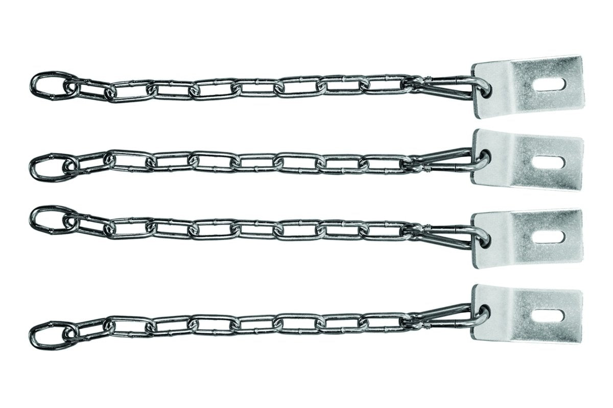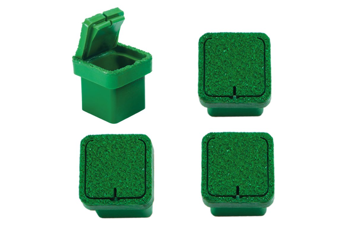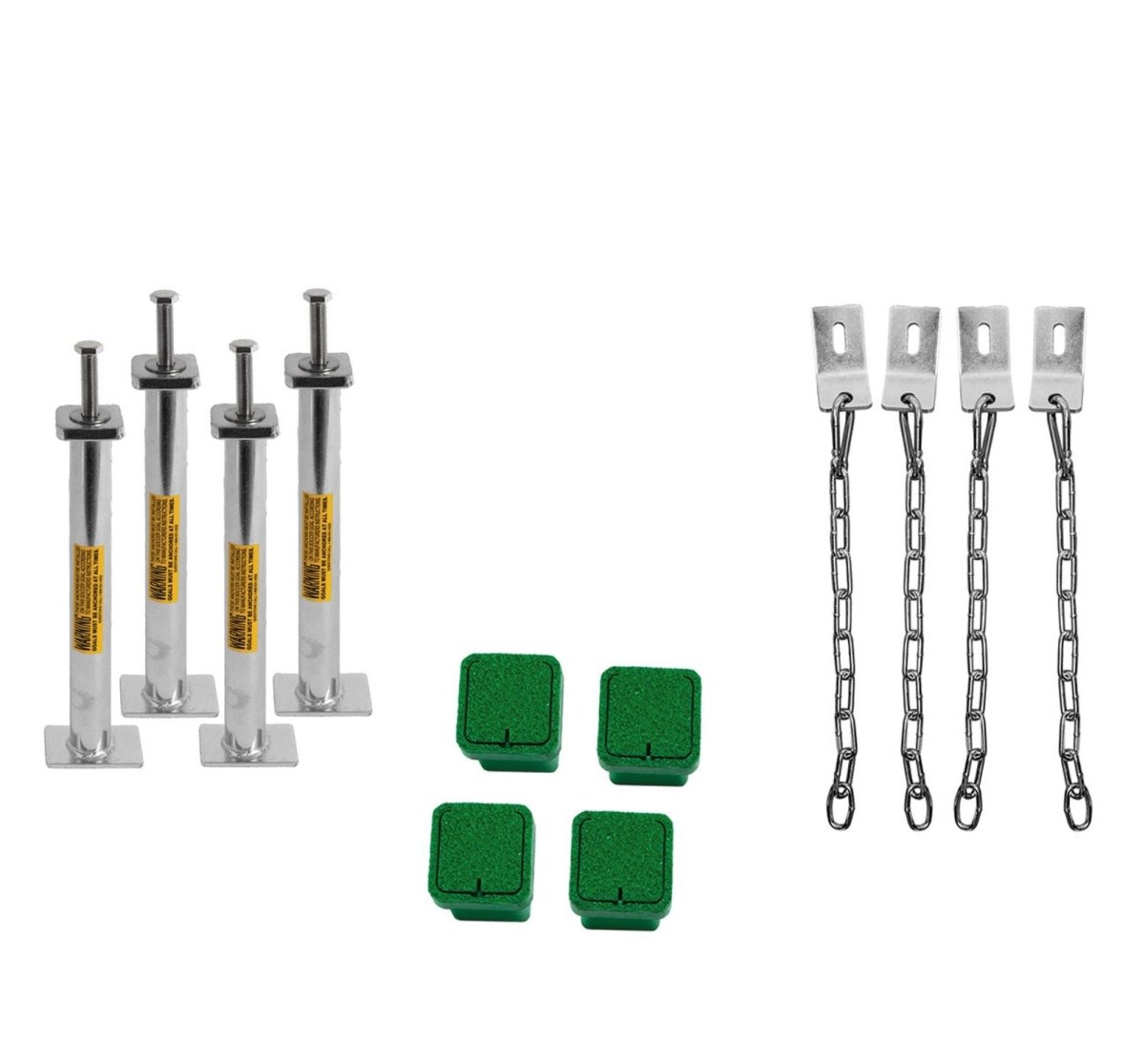 The Box Ground Anchor set includes durable, green anchor boxes which feature soft tops to help minimize disruption of the field surface when not in use, as well as zinc-plated, steel anchors. Each 10B5305 Box Ground Anchor set includes 4 anchor boxes, 4 chain leashes, 4 ground stanchions, and associated hardware.
