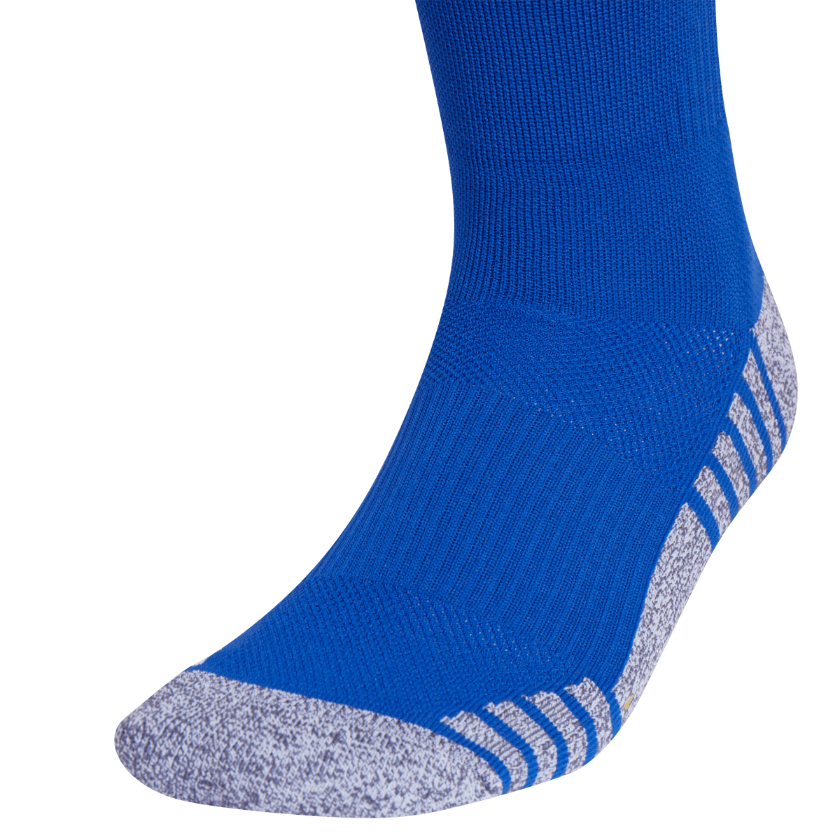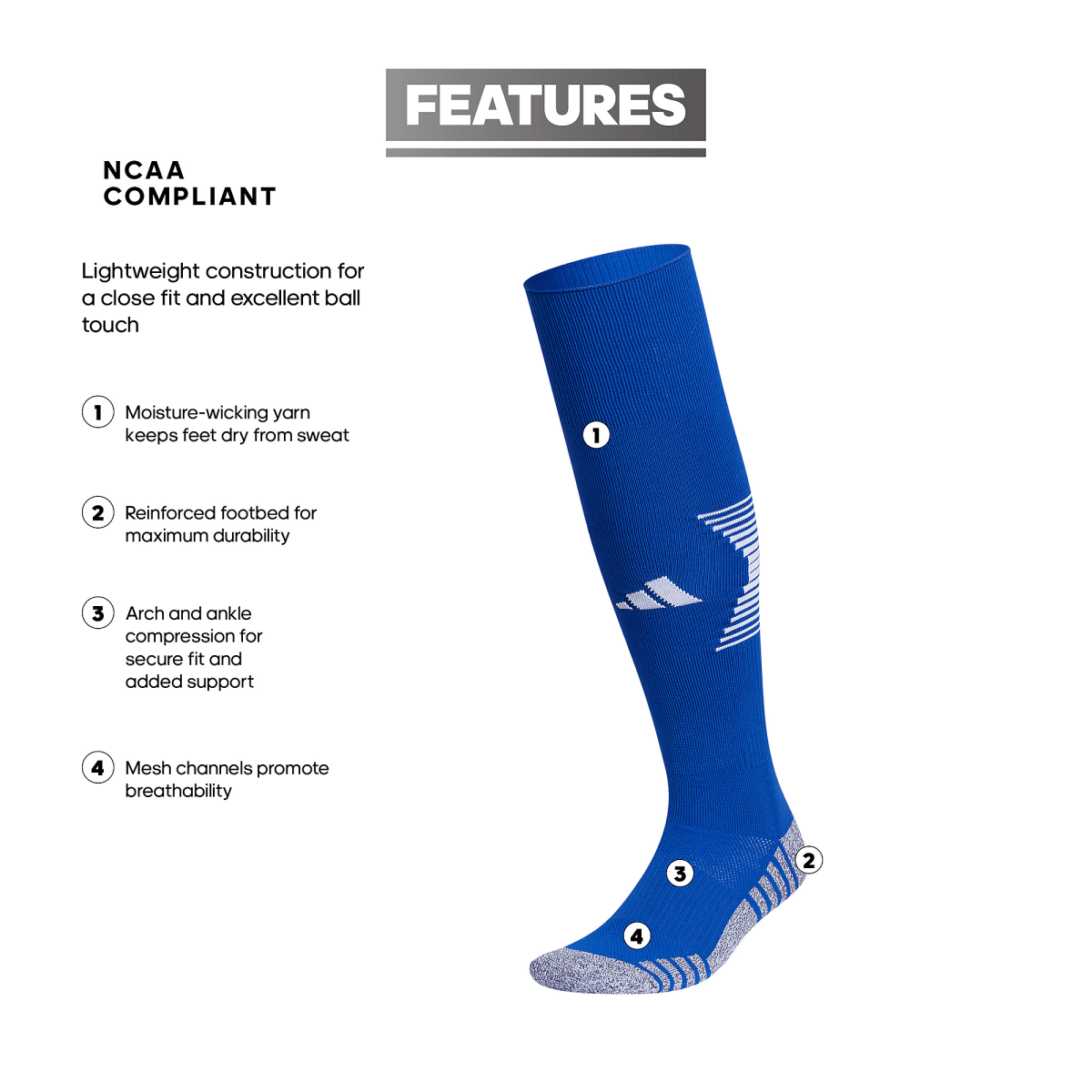 Play to your potential in these Adidas soccer socks. Moisture-wicking yarn keeps feet dry during high-intensity scrimmages and games. The lightweight design allows for optimal ball touch. Arch and ankle compression provide extra support.