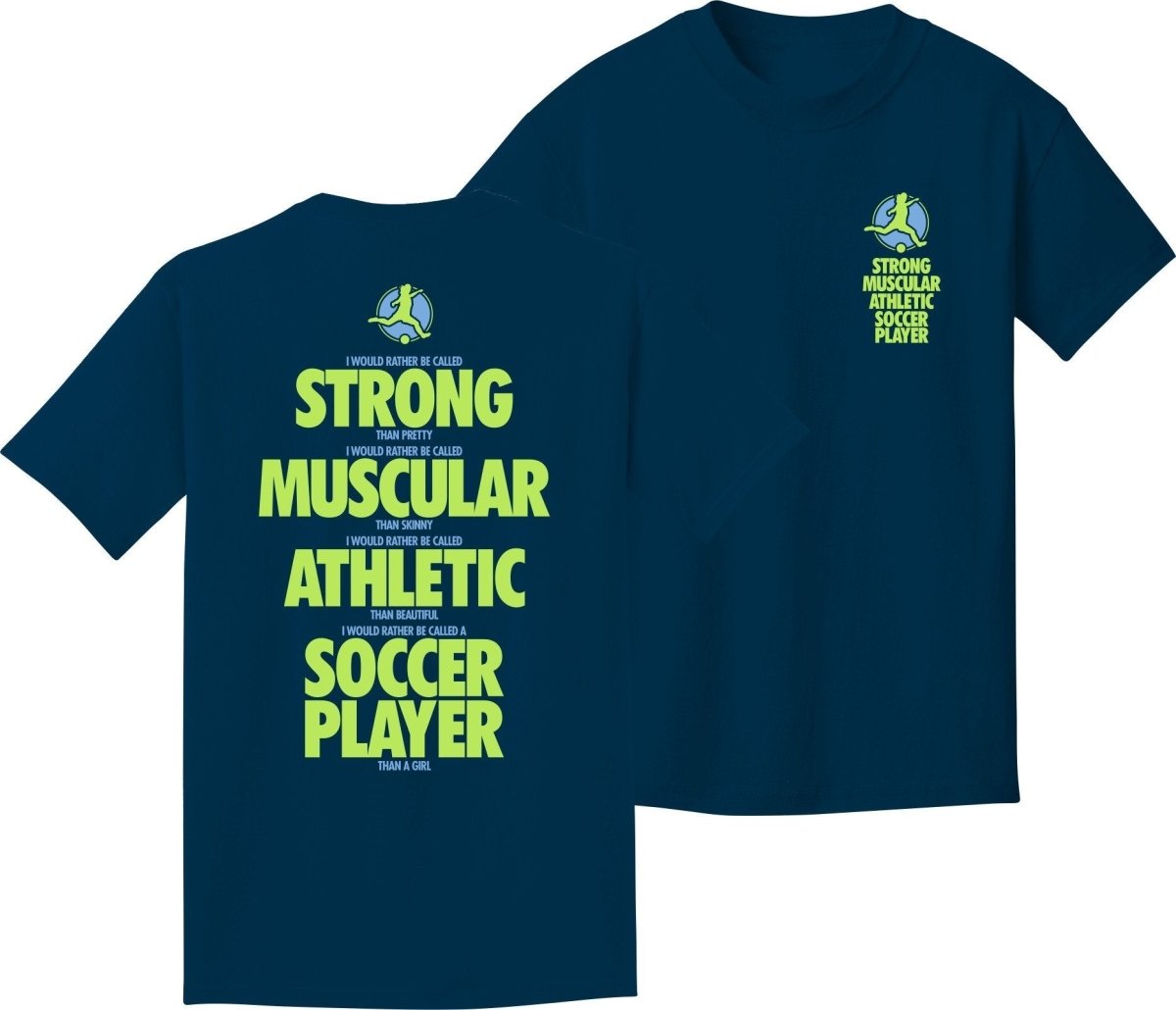 Everyone wants to be a strong, muscular, and athletic soccer player, at least at some point in a player's life, regardless of age, position, or gender. At least that's what Utopia's "I Would Rather" soccer t-shirt trying to convey via their meaningful and inspiring vivid prints. The color and comfort of the preshrunk 100% cotton is also commendable as the contrast of colors bring the statement to life, making it easier to see, even from afar. But before purchasing this shirt for your practice or casual wear, you may need to see the whole print, located at the back face of the shirt. For all we knew, the wordings found on the right chest is just a clue of the real message, which is meant for girls. Yes, this soccer shirt is exclusive for the ladies of the field.