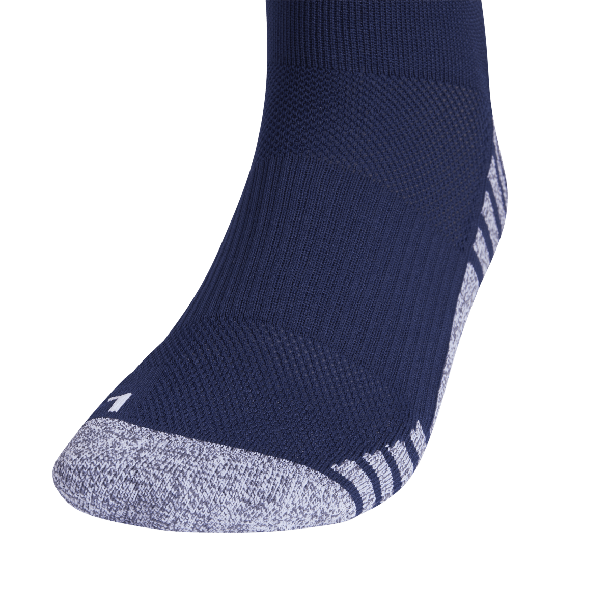 Play to your potential in these adidas soccer socks. Moisture-wicking yarn keeps feet dry during high-intensity scrimmages and games. The lightweight design allows for optimal ball touch. Arch and ankle compression provide extra support.