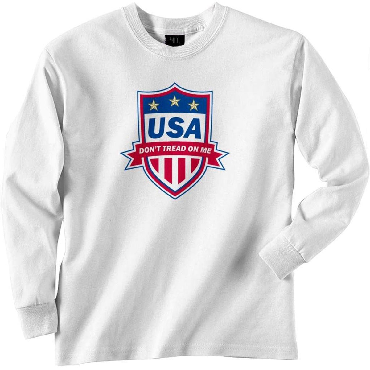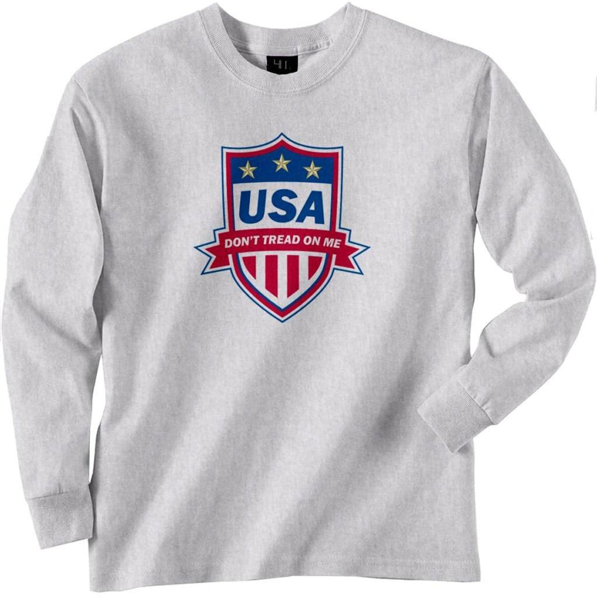 A USA Soccer themed badge with "Don't Tread on Me" afeatured. Printed on a 6.1oz. 100% preshrunk cotton tee. The inks used are a water based eco-friendly ink developed by Brother to hold up well under normal washing and drying. It is similar to water based screen printing inks that they give a really soft hand feel and wash well.