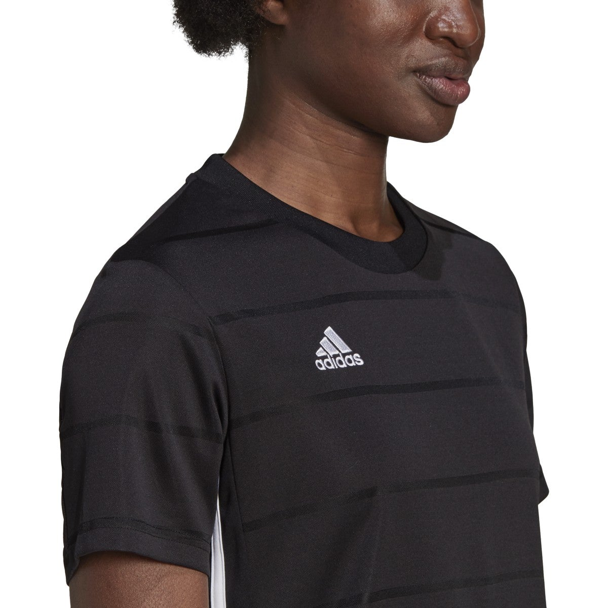 With iconic design cues and a shiny build, the adidas Campeon 21 Jersey gives a nod to the kits worn by Germany at one of the world's biggest soccer events. It's made from a moisture-absorbing AEROREADY that keeps you cool and dry, even when the action heats up.