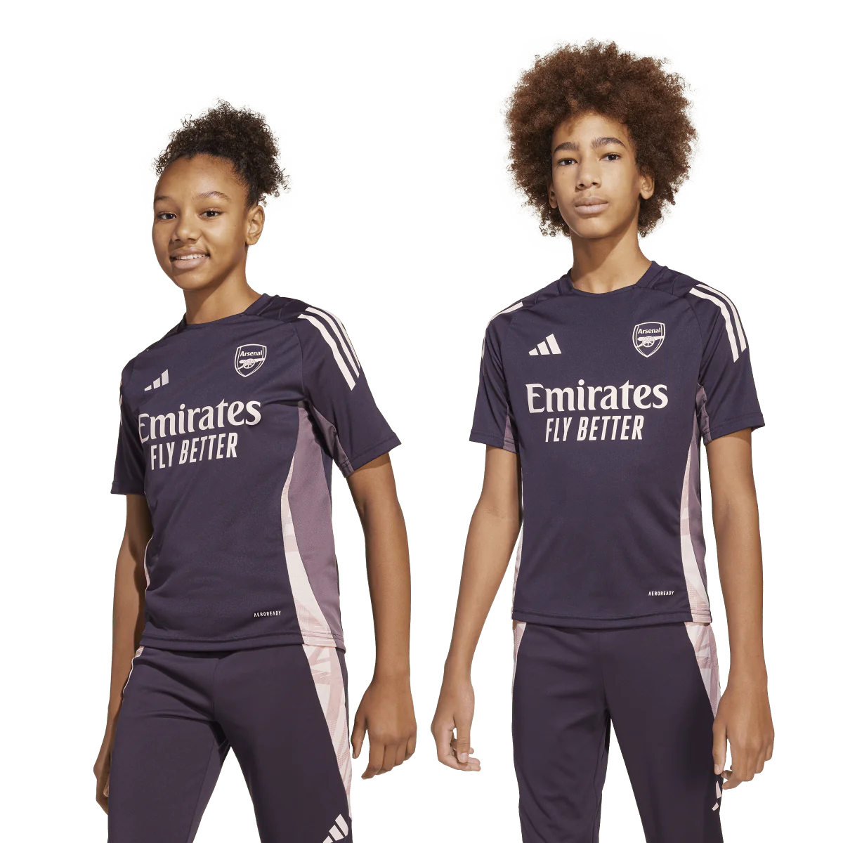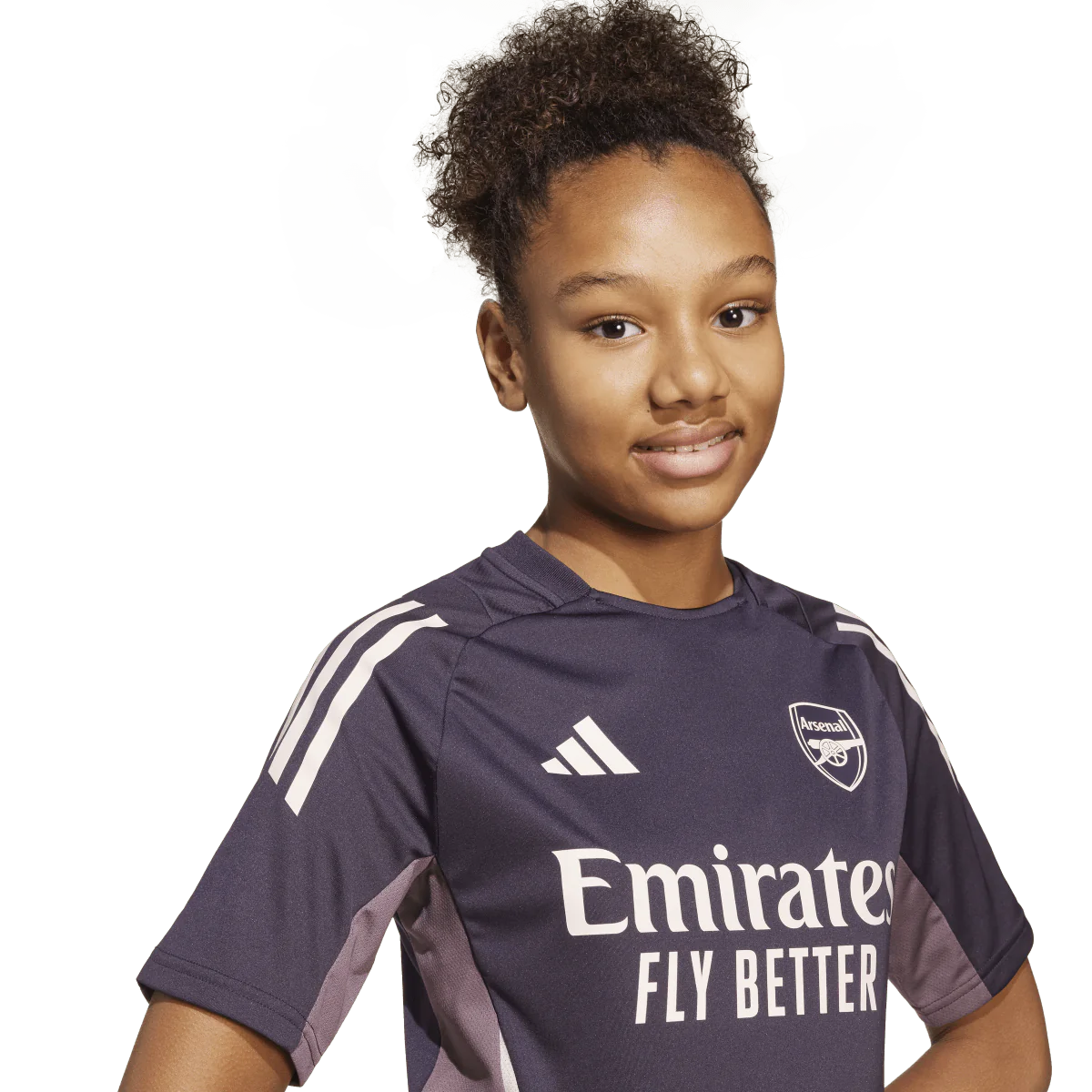 When you're aiming for the top, you need a kit built to perform. Part of Arsenal's adidas training range, this juniors' Tiro 24 jersey is engineered for the intensity of match day preparation. AEROREADY manages moisture to keep you dry through the toughest drills, and lightweight fabric and mesh inserts further dial up the comfort levels. A heat-applied badge fires off your football pride. This product is made with 100% recycled materials. By reusing materials that have already been created, we help to reduce waste and our reliance on finite resources and reduce the footprint of the products we make.