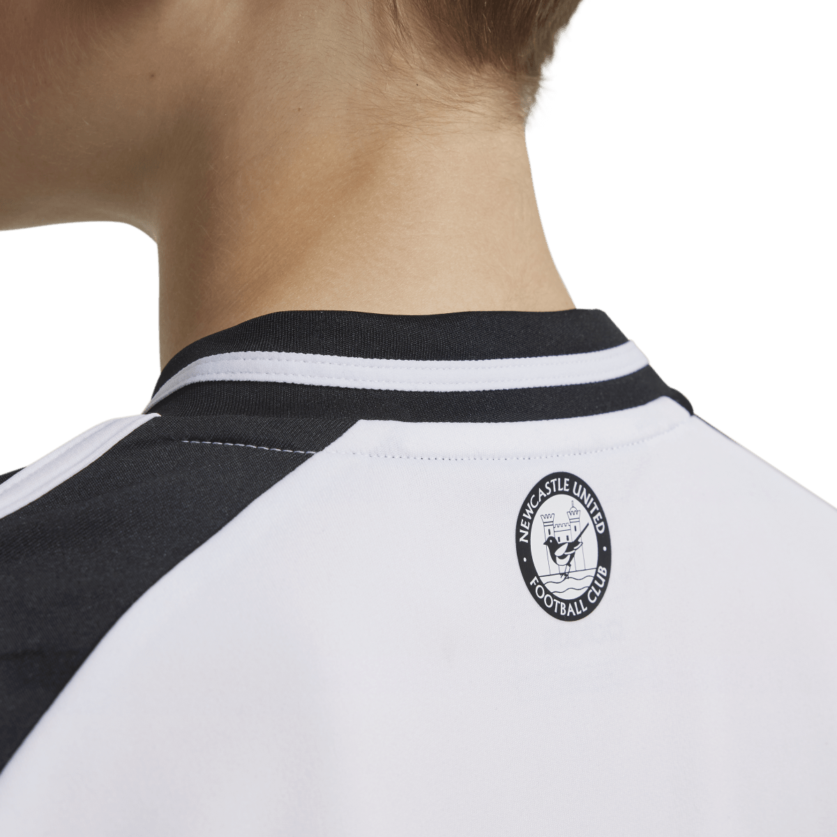 With three wide black stripes front and back, the bold design of this adidas Newcastle United FC home jersey conjures memories of some classic Magpies kits. Perching on the back neck, a vintage club badge flashes more football heritage. Moisture-managing AEROREADY and soft interlock fabric ensure fans stay comfortable while they look forward to a bright future.