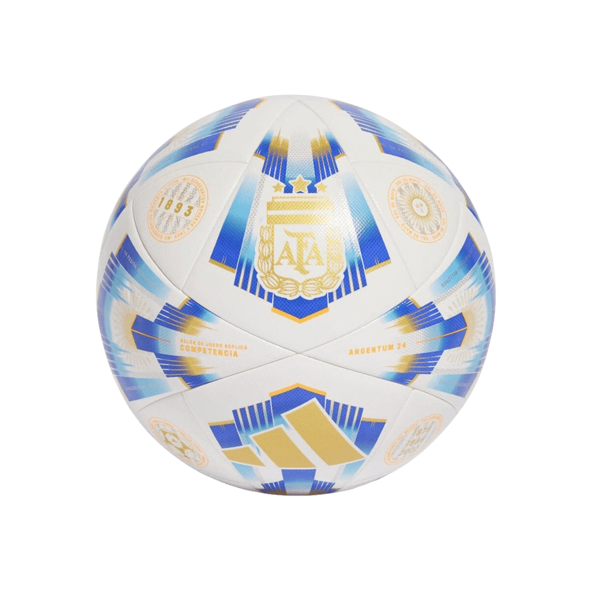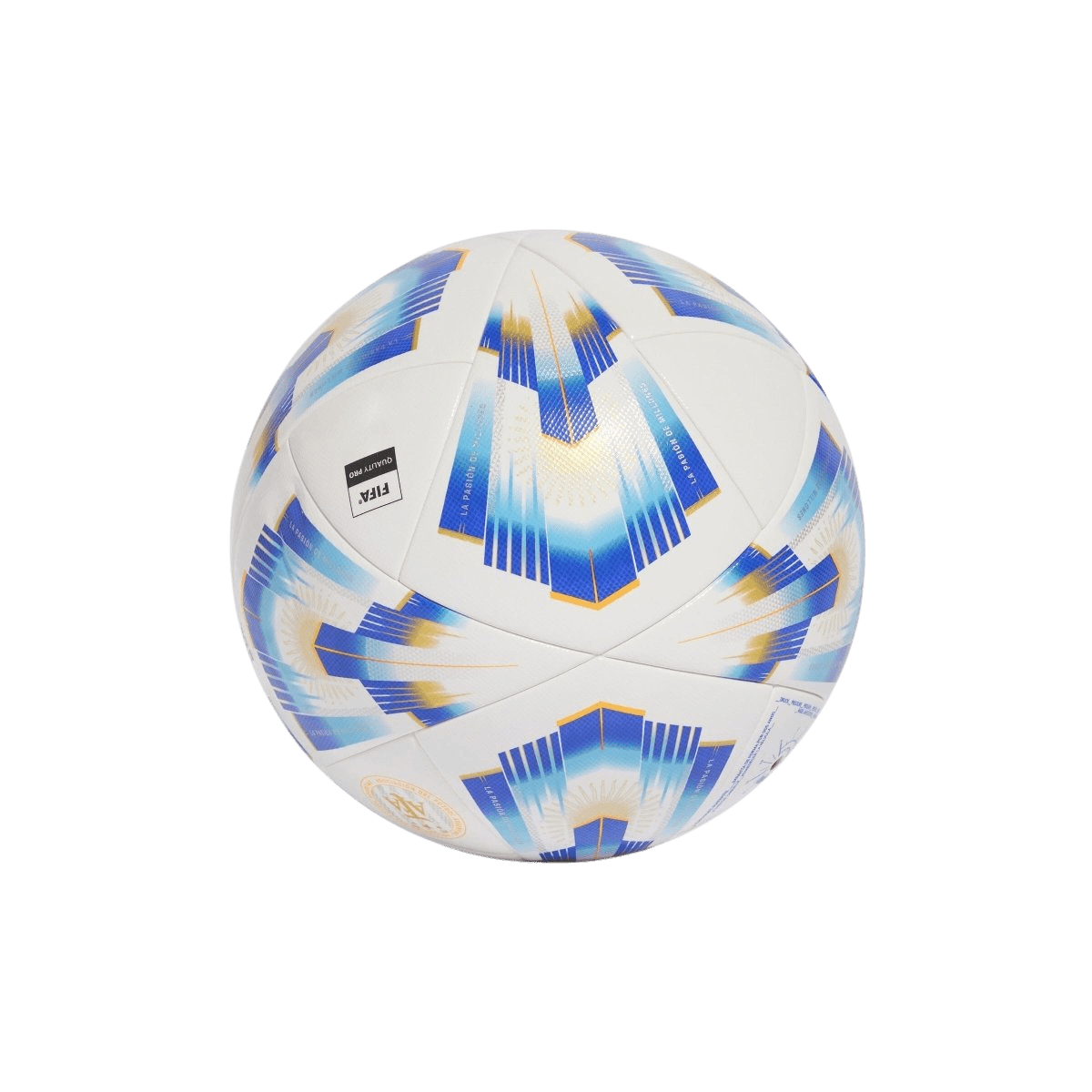 Showing off graphics that celebrate two decades of the adidas Argentum official match ball, this seamless Competition ball is engineered to produce peak match day performances. A resilient butyl bladder ensures more playing, less pumping. That bold design represents the color and passion of Argentine football.