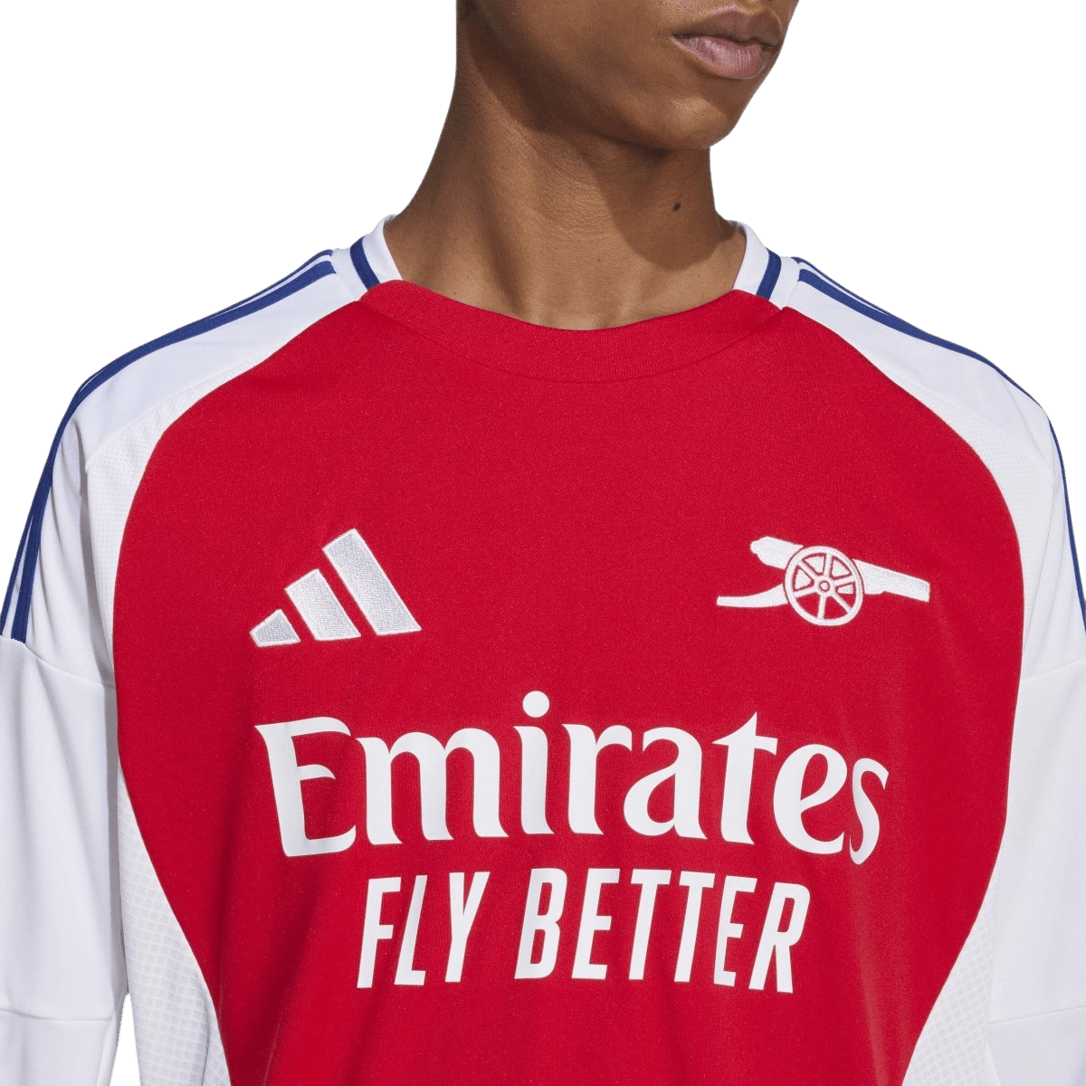 A clean look for a young squad who have their sights set on the very top. Standing out over those timeless home colours, a simple embroidered cannon crest is the star of this Arsenal jersey from adidas. Moisture-managing AEROREADY, soft interlock fabric and long sleeves combine to keep football fans comfortable while they enjoy the ride.This product is made with 100% recycled materials. By reusing materials that have already been created, we help to reduce waste and our reliance on finite resources and reduce the footprint of the products we make.