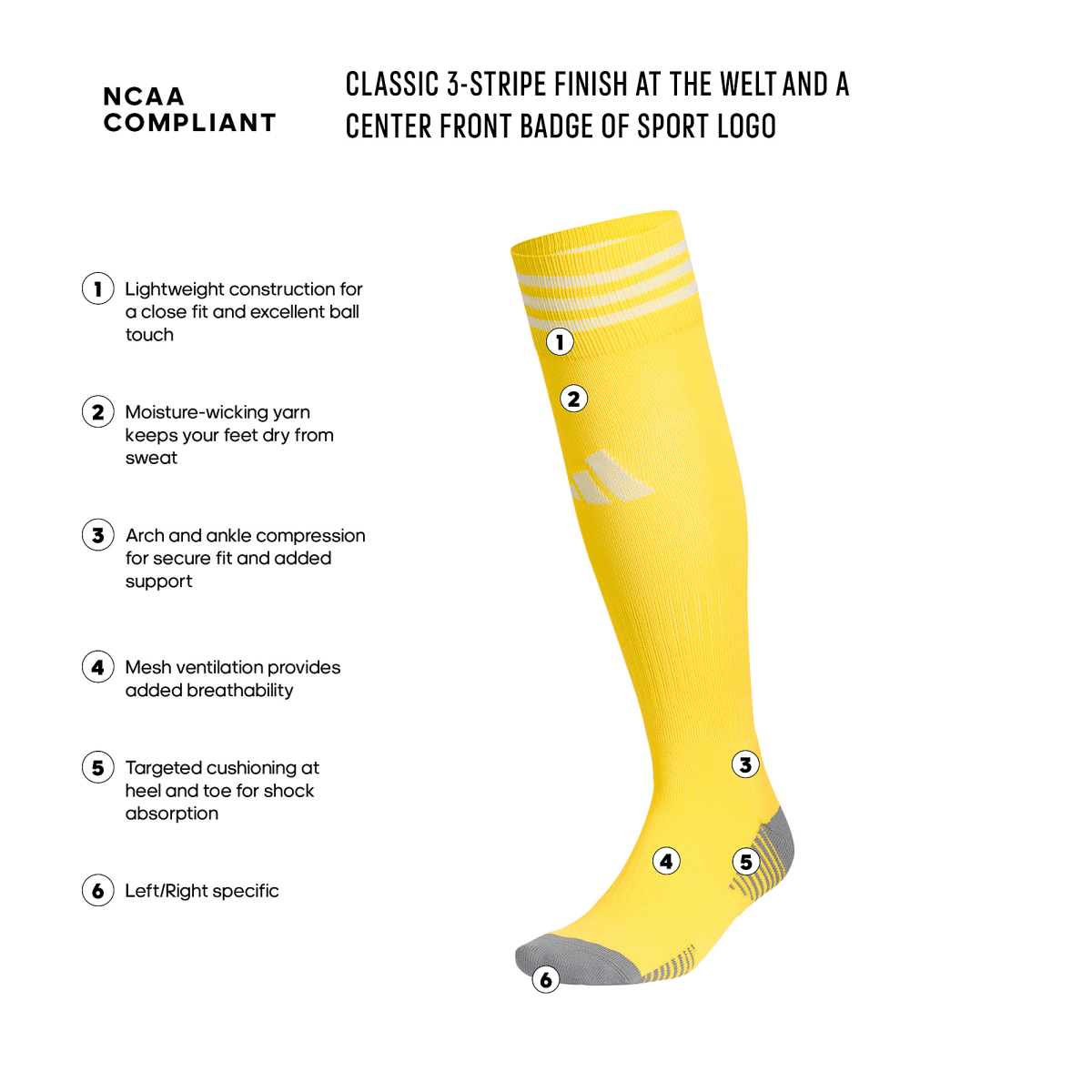 Before you head out on the pitch, pull on these adidas soccer socks. The 3-Stripes are the last thing the competition will see just before you score. Airy mesh in key areas, moisture-wicking yarn and the over-the-calf length keep you ready for action.
