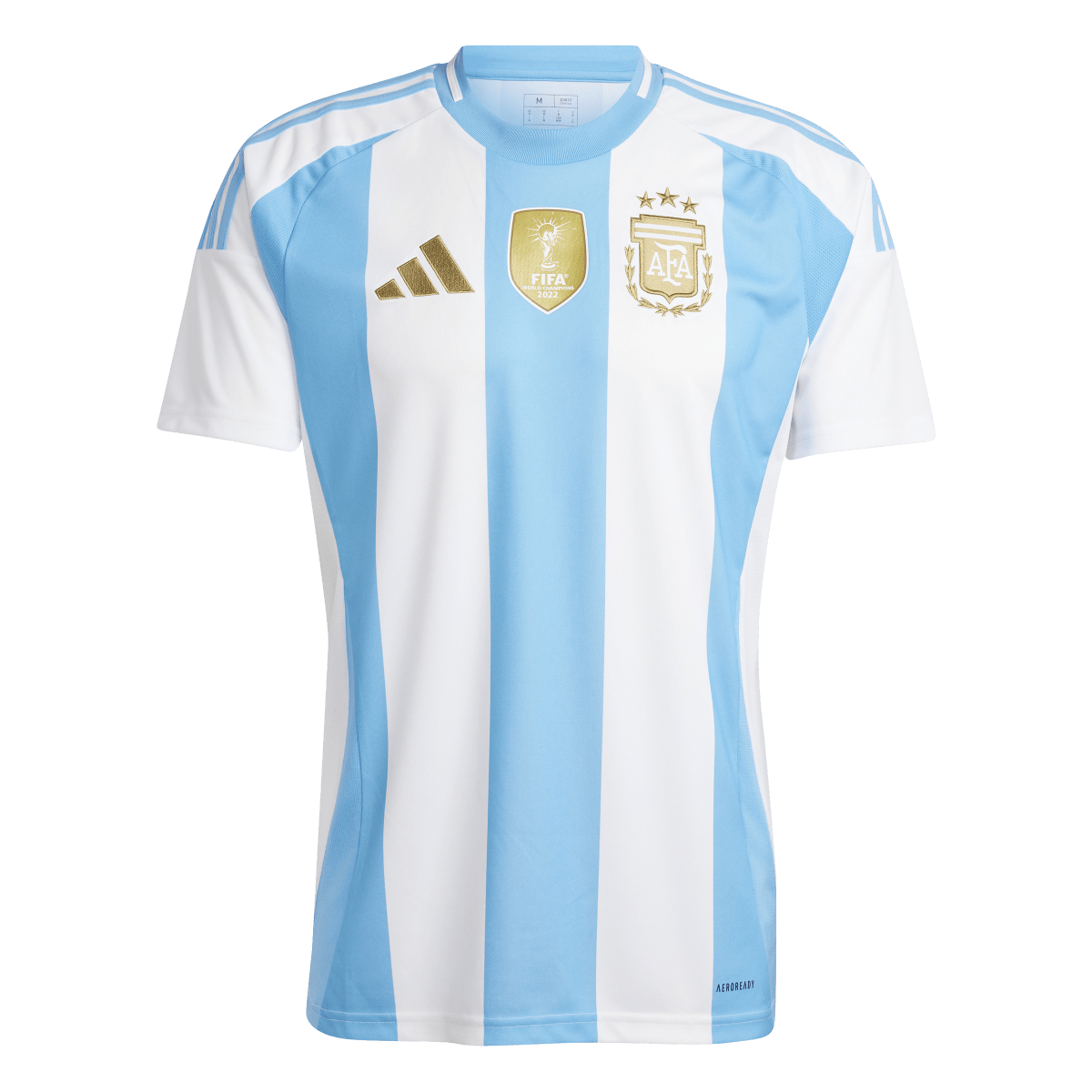 A classic look for the world champions. From those famous stripes to its Sun of May sign-off, this adidas shirt rewards loyal fans with all the elements you'd want to see in a traditional Argentina home jersey. Those gold accents and three stars are extras in honour of that famous win in Qatar. Built for fan comfort and pride, it features moisture-managing AEROREADY and an embroidered badge packed with football passion.This product is made with 100% recycled materials. By reusing materials that have already been created, we help to reduce waste and our reliance on finite resources and reduce the footprint of the products we make.