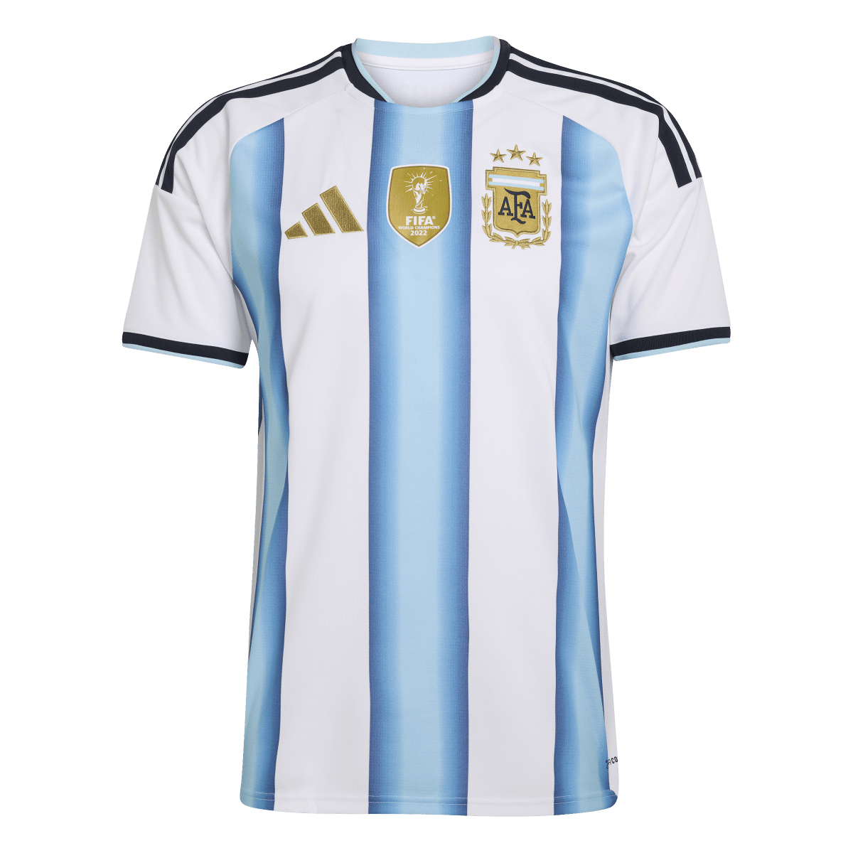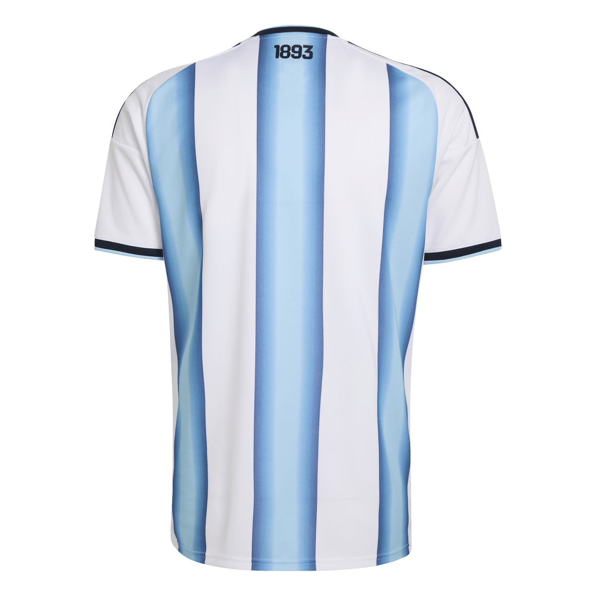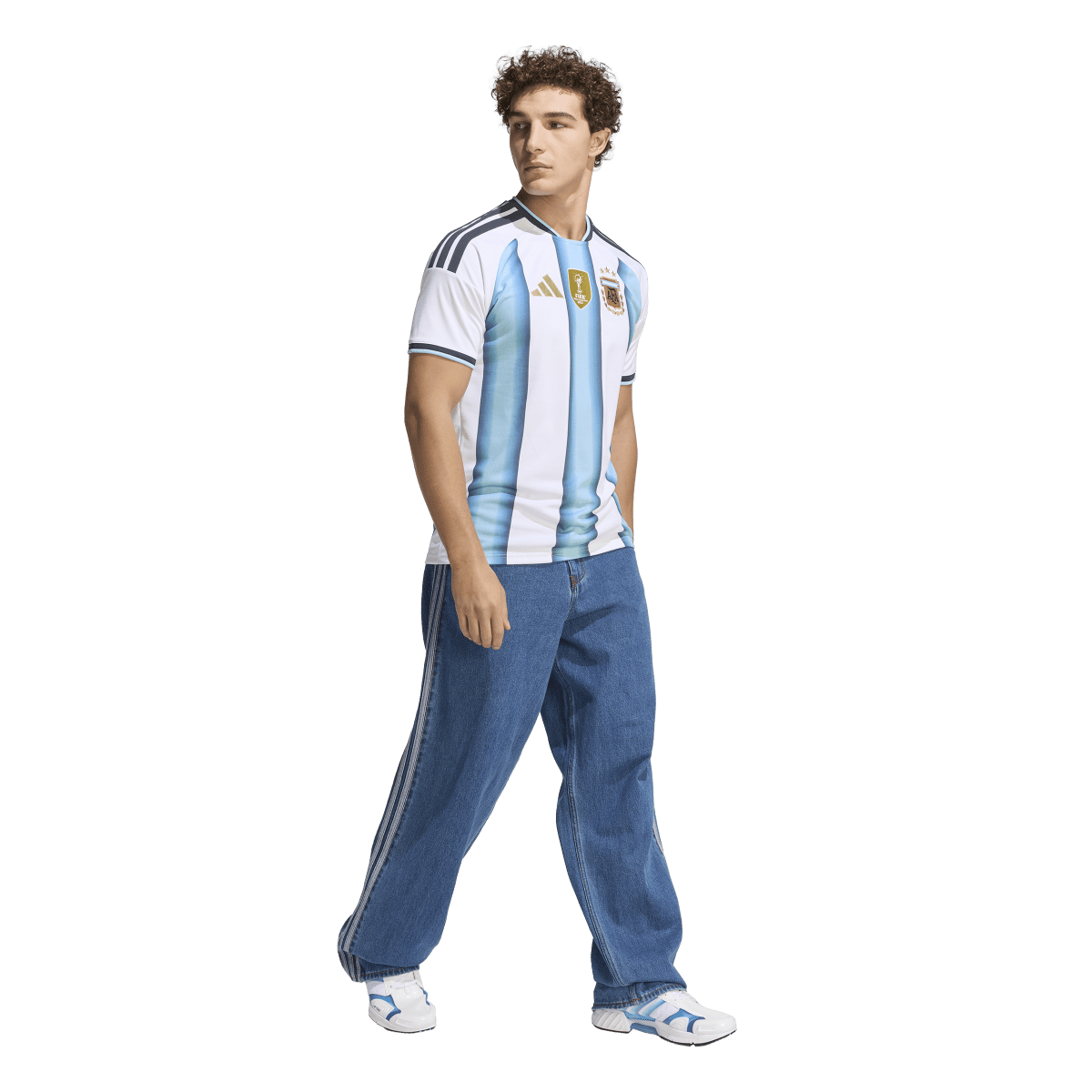 The Argentina 26 Home Jersey is more than just a jersey; it's a celebration of Argentina's soccer legacy. This kit is inspired by the jerseys worn during Argentina's three World Cup victories in '78, '86, and '22, and complemented by the federation's year of foundation as a proud sign-off. Cool. Dry. Ready. Climacool wicks and disperses sweat for a cool, dry and distraction free performance. The jersey's doubleknit construction offers durability and comfort, while its slim fit hugs the body, allowing for unrestricted movement on the pitch. Embrace the spirit of the World Champions with this jersey.