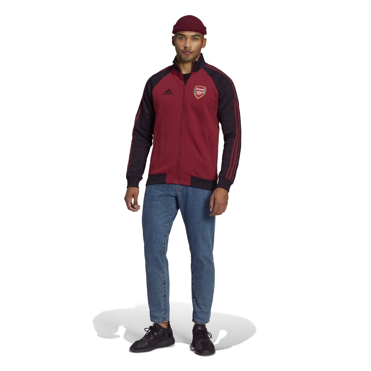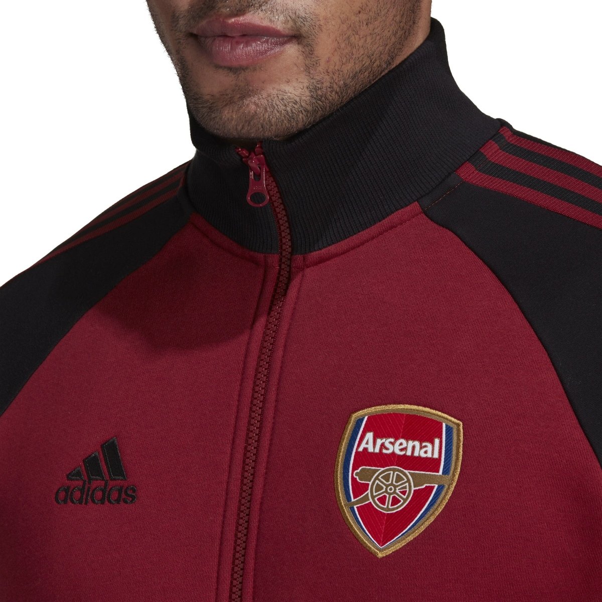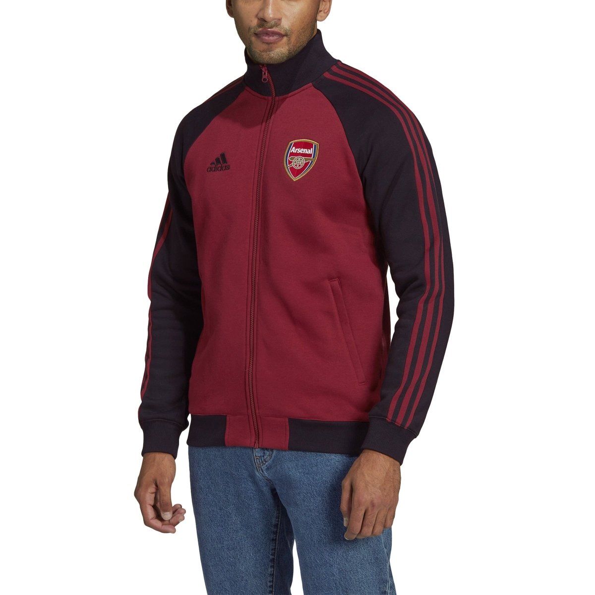 As Arsenal's players walk out onto the Emirates Stadium pitch, this adidas jacket's darker shades bring back memories of the final season at their previous home. Its fleece build and stand-up collar are all about staying warm. The embroidered badge adds the perfect football finish.