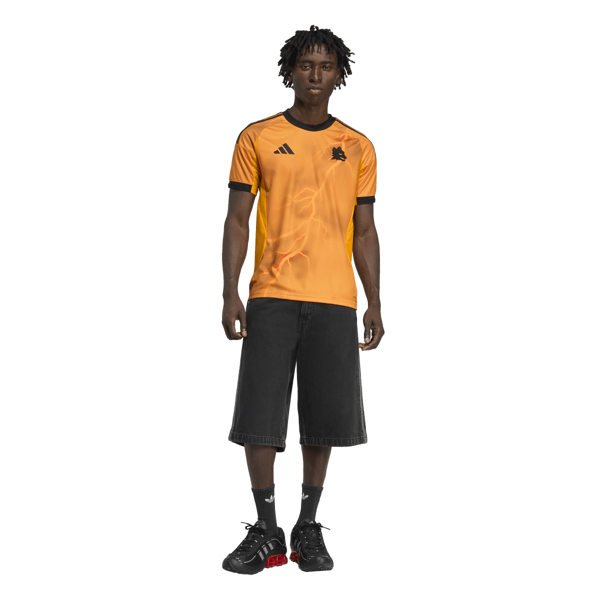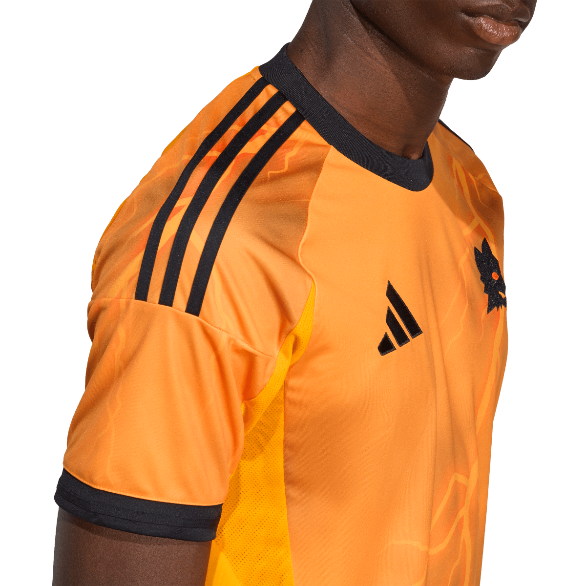 The Eternal City's protector, Jupiter, takes centre-stage on this AS Roma football jersey from adidas. Bisected by a lightning bolt sent from the heavens, the dynamic design will keep supporters standing out on match day. Moisture-managing AEROREADY and soft fabric ensure it feels divine to pull on.