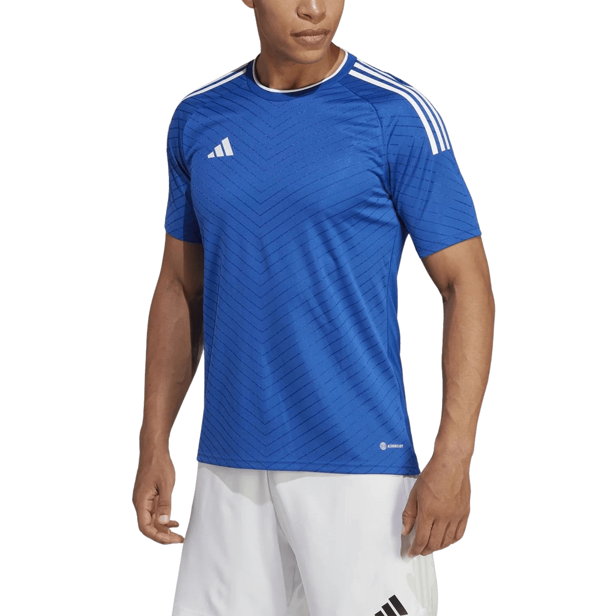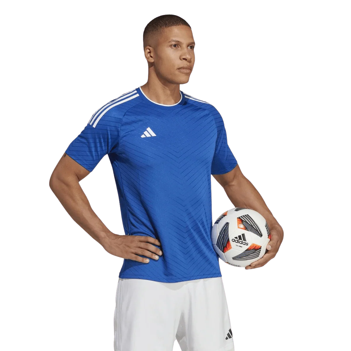 Stay dry when the action heats up on the soccer pitch. This match day jersey features AEROREADY to keep you comfortable all game long. The slim cut ensures a streamlined fit when you're practicing your skills. Signature 3-Stripes on the shoulders and a 3 Bar Logo give it a classic finish. Made with 100% recycled materials, this product represents just one of our solutions to help end plastic waste.