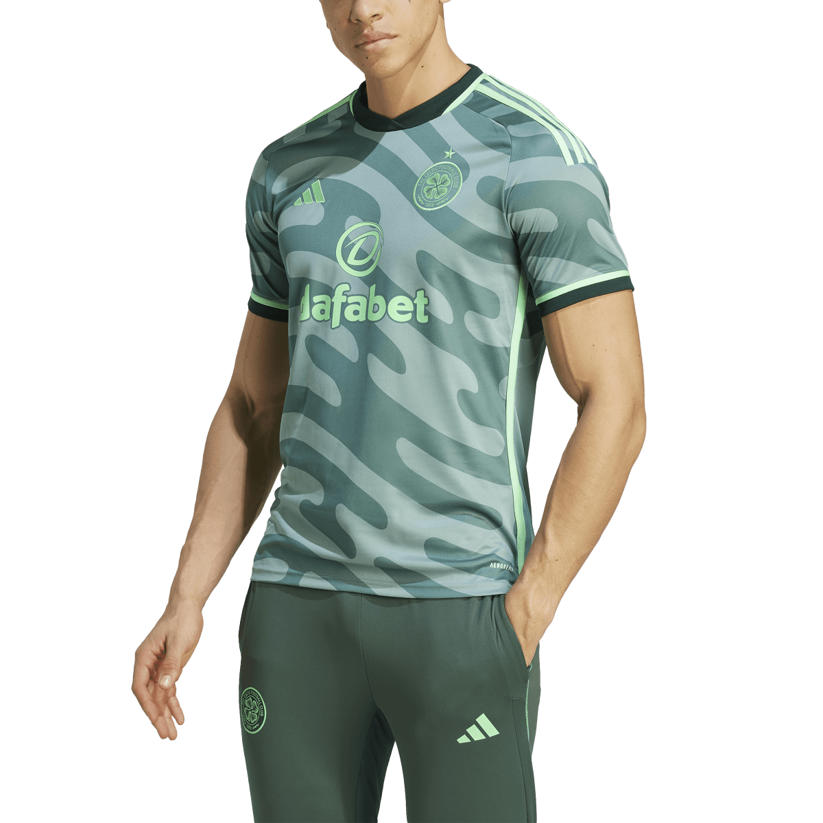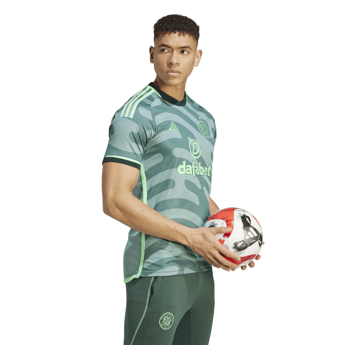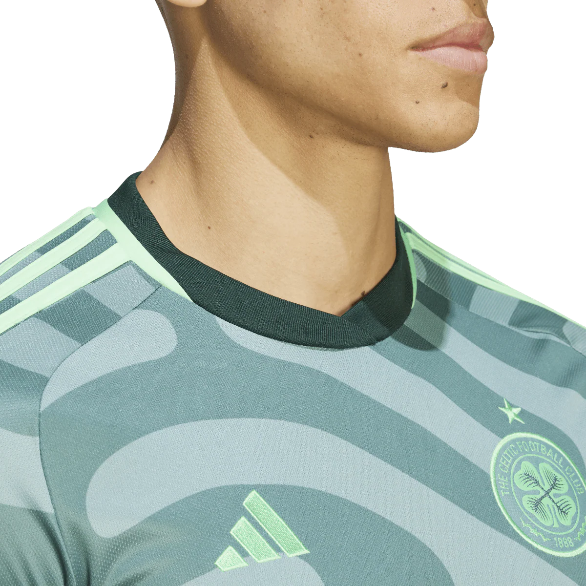 In tune with Glaswegian culture. The shapes and colors that bring this adidas Celtic FC third jersey bouncing to life come from the city's thriving arts scene. Standing out over the sound wave-inspired design, that woven club badge takes pride of place. Pull on this eye-catching soccer shirt to feel the comfort of its moisture-wicking AEROREADY and soft fabric. Made with 100% recycled materials, this product represents just one of our solutions to help end plastic waste.
