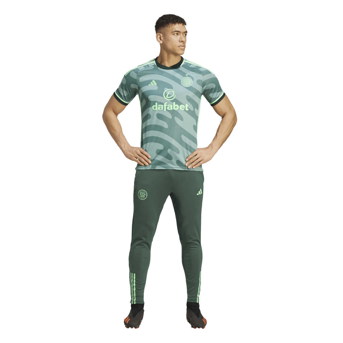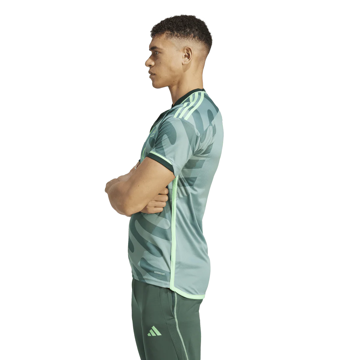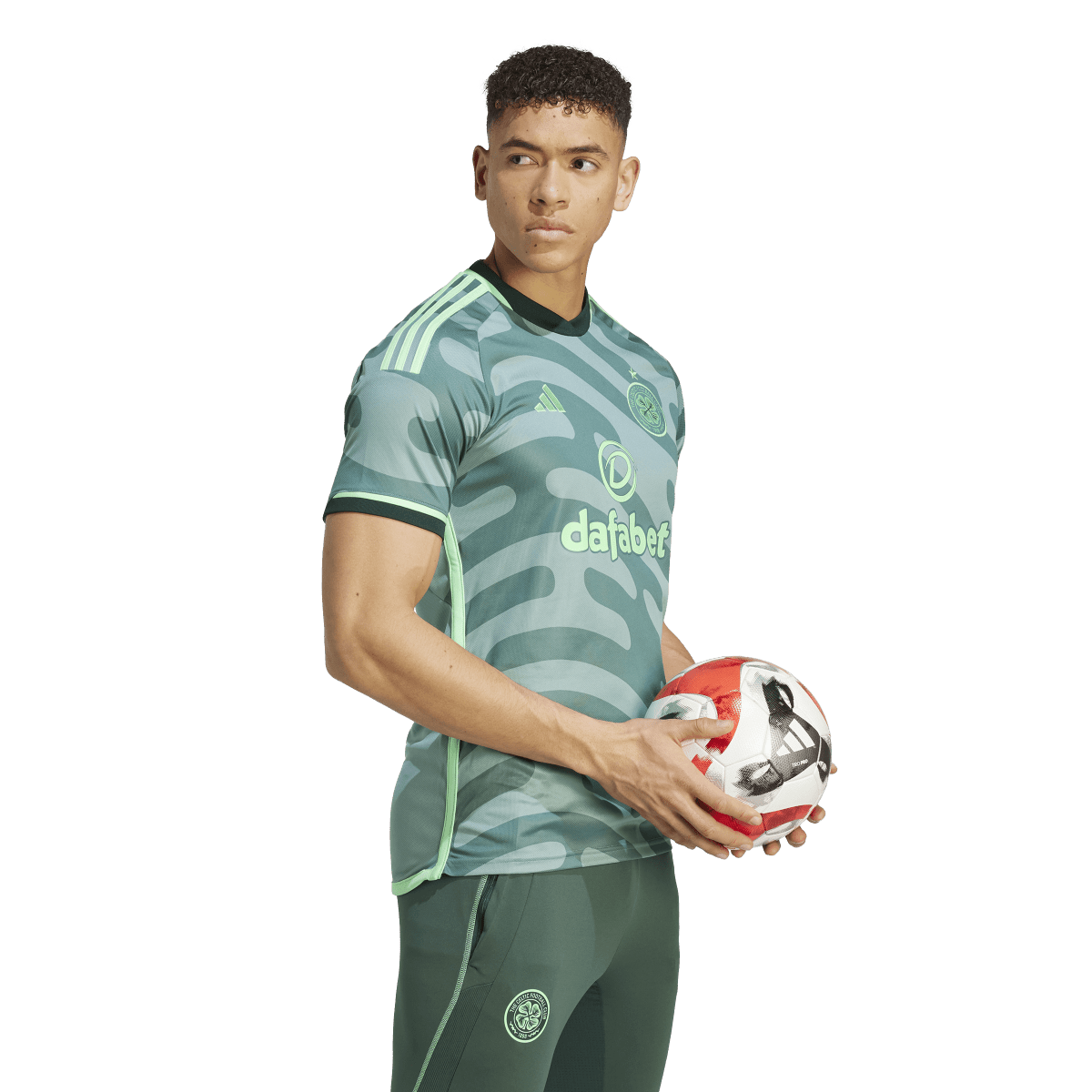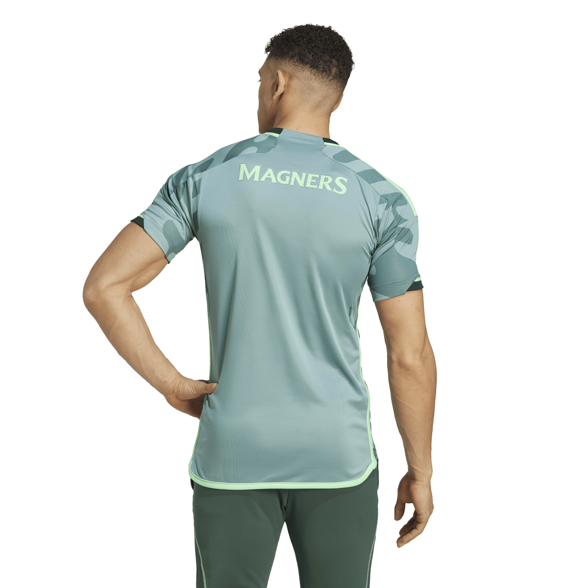 In tune with Glaswegian culture. The shapes and colors that bring this adidas Celtic FC third jersey bouncing to life come from the city's thriving arts scene. Standing out over the sound wave-inspired design, that woven club badge takes pride of place. Pull on this eye-catching soccer shirt to feel the comfort of its moisture-wicking AEROREADY and soft fabric. Made with 100% recycled materials, this product represents just one of our solutions to help end plastic waste.