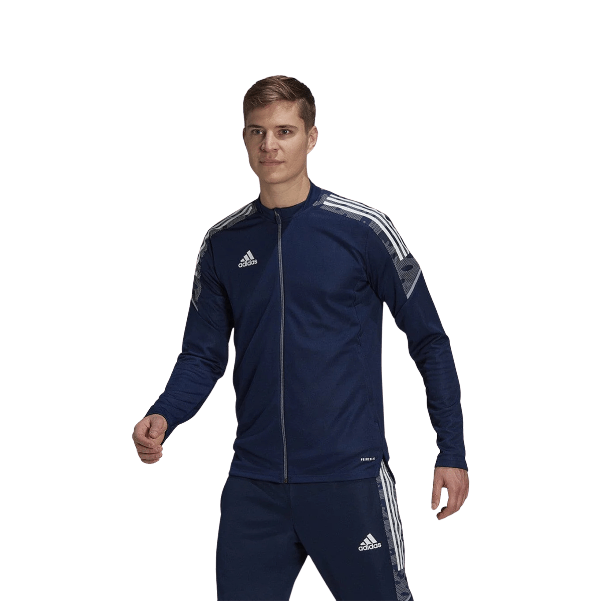 Progress doesn't happen overnight. That's why adidas created this Condivo 21 soccer jacket using Primeblue made with Parley Ocean Plastic. Because it's a start. AEROREADY moves sweat away from your skin to blot out unwanted distractions. Inspired by moving water, a camo-style design on the shoulders reflects the elegance of our oceans. The slim fit ensures your game keeps flowing.