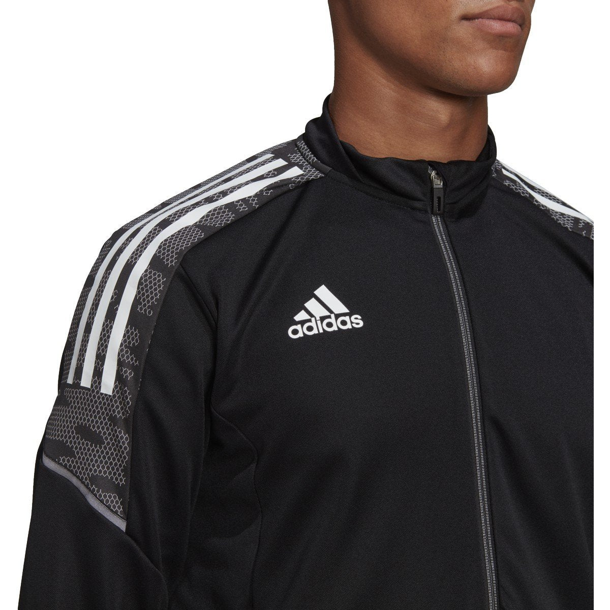 Progress doesn't happen overnight. That's why adidas created this Condivo 21 soccer jacket using Primeblue made with Parley Ocean Plastic. Because it's a start. AEROREADY moves sweat away from your skin to blot out unwanted distractions. Inspired by moving water, a camo-style design on the shoulders reflects the elegance of our oceans. The slim fit ensures your game keeps flowing.
