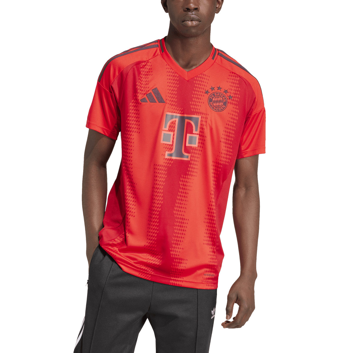 A classic striped home shirt, with a twist. Created from three shades of red, the meandering stripes on this adidas FC Bayern jersey are formed from tiny diamonds for added club DNA. Built to keep football fans comfortable and proud, it also features moisture-managing AEROREADY and an embroidered club badge. This product is made with 100% recycled materials. By reusing materials that have already been created, we help to reduce waste and our reliance on finite resources and reduce the footprint of the products we make.