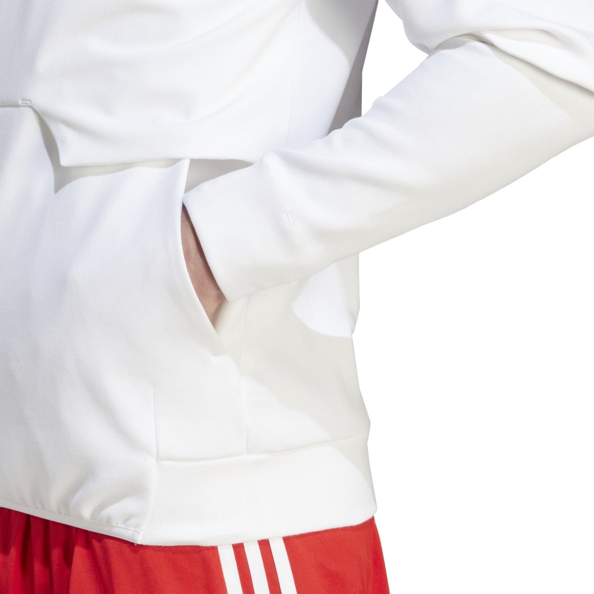 A jacket rich in FC Bayern DNA. The spirit of the legendary German football team shines through in the FC Bayern Anthem Jacket. Borrowing from the white of the club's home jersey, the jacket features iconic details to give the team a unified look in the lineup. The heat-applied badge on the chest shows off your team pride, while the peach-soft fabric and stand-up collar ensures you feel comfortable in your colors — from the stadium to the sidewalk. Zipped pockets keep your essentials secure so you can focus on what's important: supporting your team.