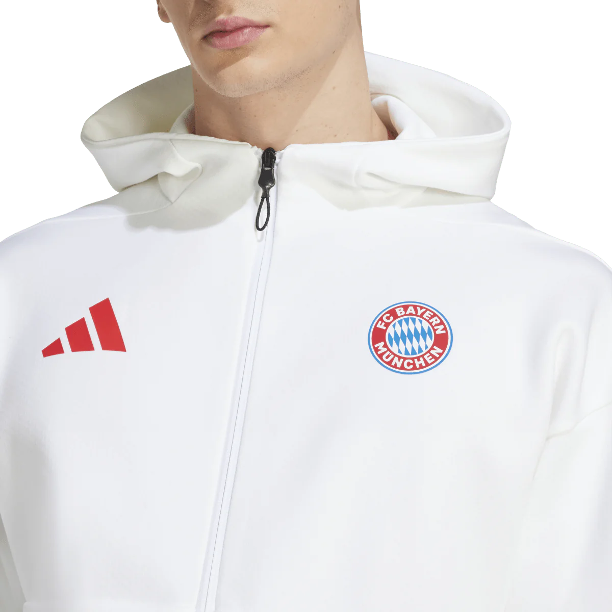 Created for players and dedicated fans, this adidas FC Bayern anthem jacket will have you ready to represent. The top the club's first team zip up in the dressing room on match days, it's made from warm doubleknit fabric and features deep kangaroo pockets. An embroidered team badge lets everyone know you're part of the squad.