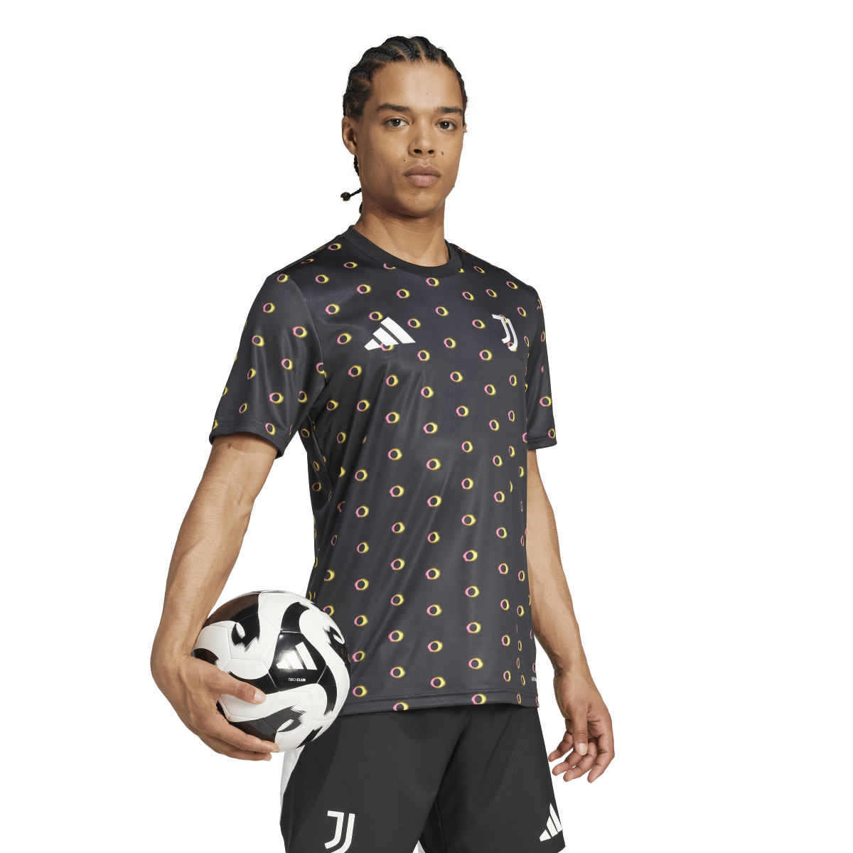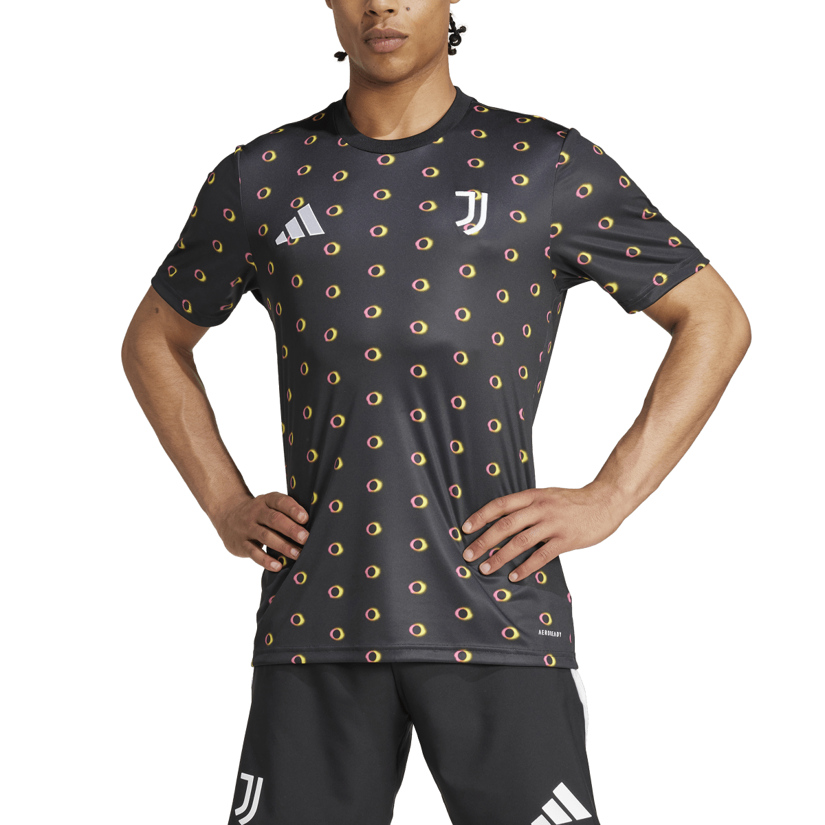 This is the adidas jersey Juventus players wear during the countdown to kick-off. Prep for your next football game in a shirt equipped with moisture-managing AEROREADY, there to keep you fresh before the action begins. Flashing repeating lunar eclipse graphics in the club's bright away kit colours, that interlock fabric is soft to the touch to ensure nothing distracts you from your primary mission. This product is made with 100% recycled materials. By reusing materials that have already been created, we help to reduce waste and our reliance on finite resources and reduce the footprint of the products we make.