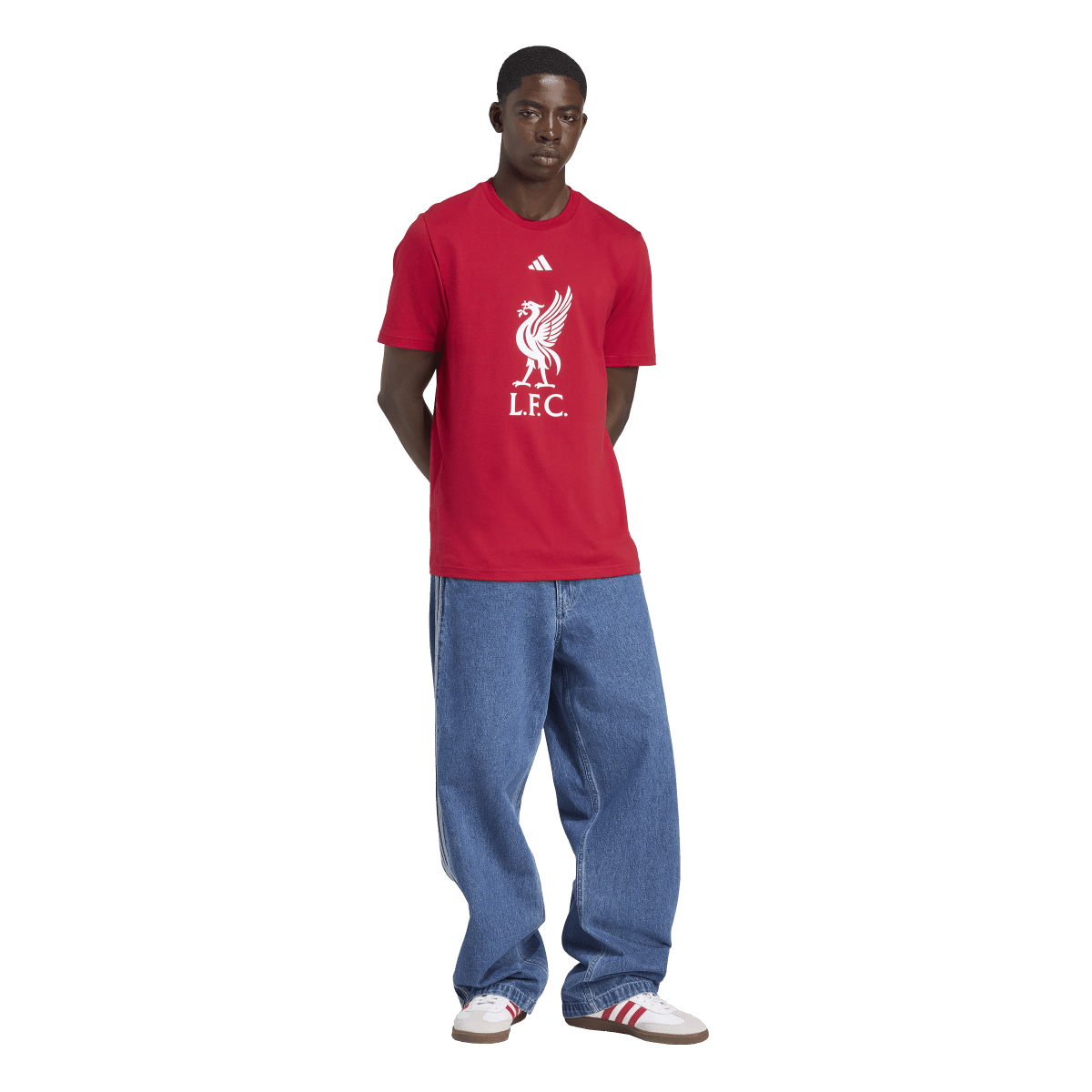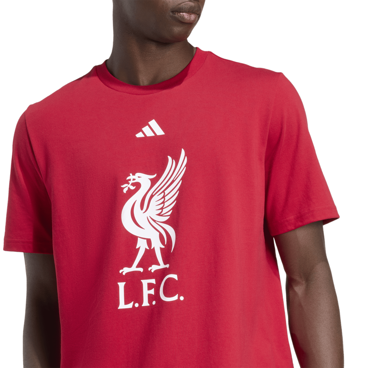 Show your unwavering support for Liverpool FC in this adidas football tee. Its comfortable single jersey fabric means it's the perfect choice for cheering the Reds to victory on match day. A large club badge on the chest makes it impossible to overlook your fandom.