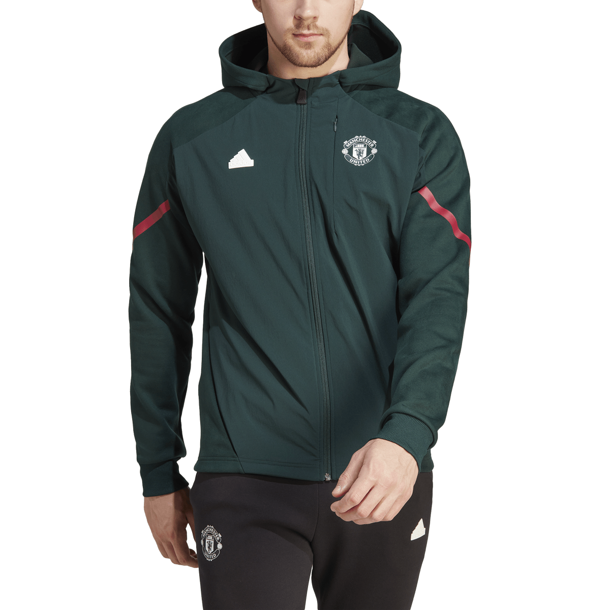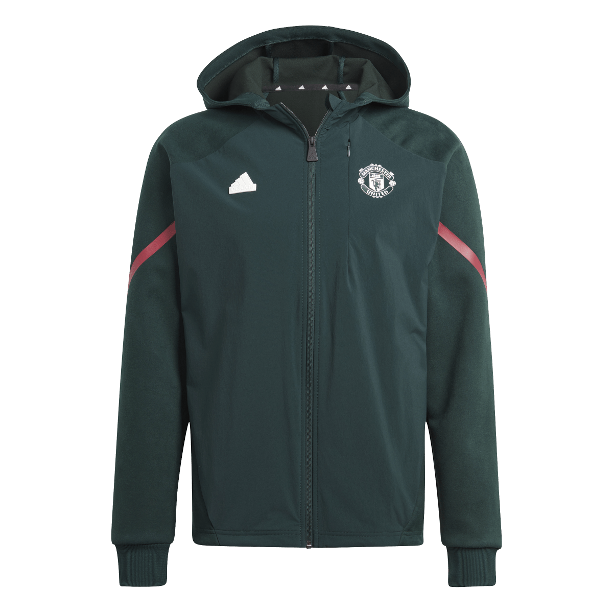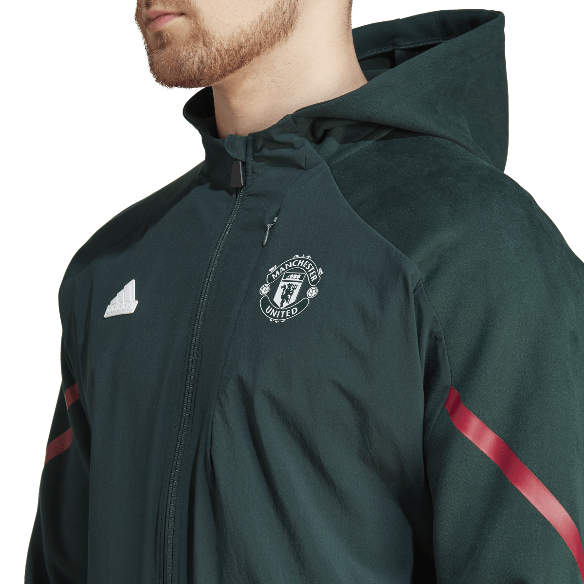Made for modern football. Wrap yourself in Manchester United's away colours with this adidas hoodie. Combining a techy look with a real attention to the details, it's designed for confident support. A woven club badge on the chest steals the show. But it's the soft, stretchy fabric and mesh lining that'll keep you pulling it on, time and again. Made with a series of recycled materials, and at least 70% recycled content, this product represents just one of our solutions to help end plastic waste.