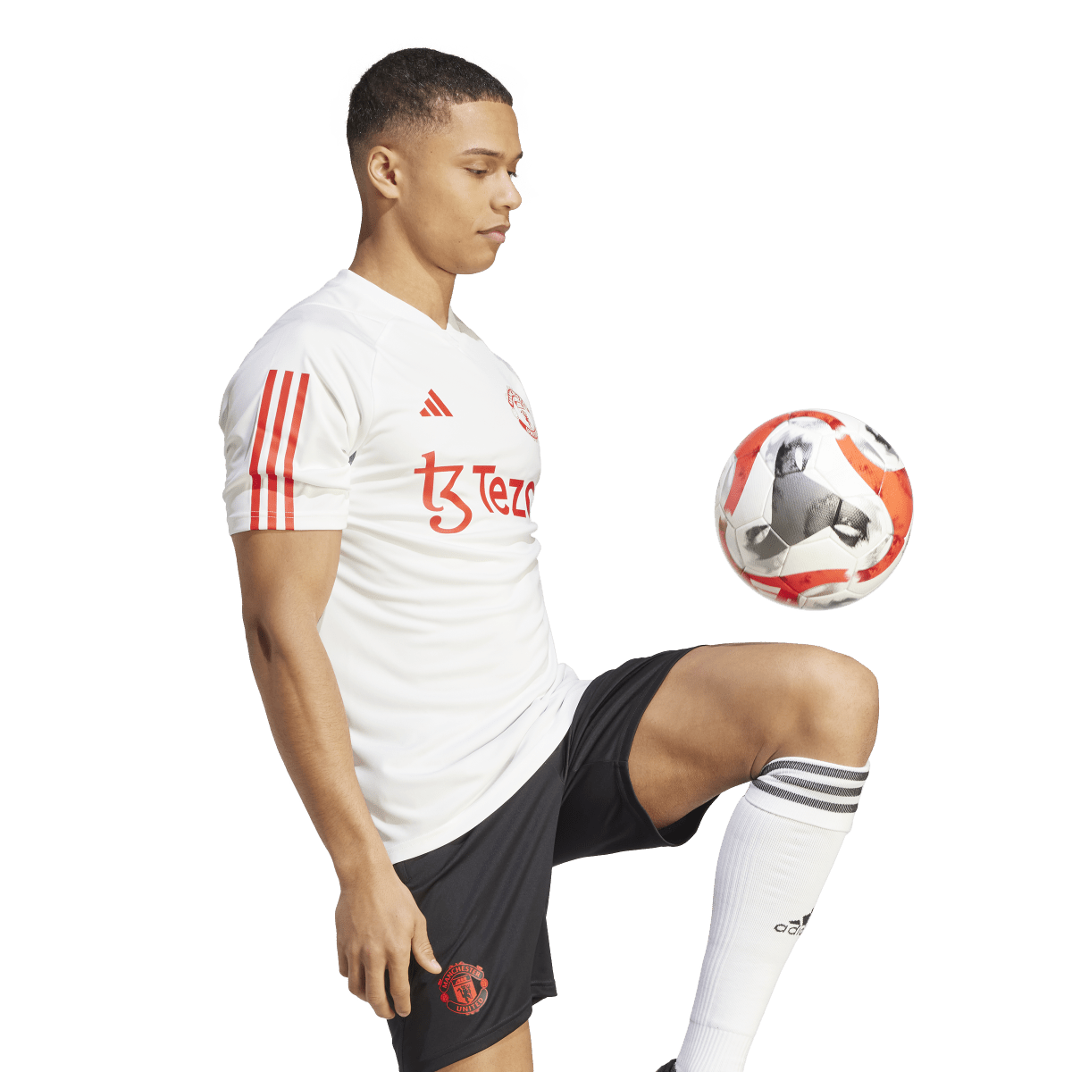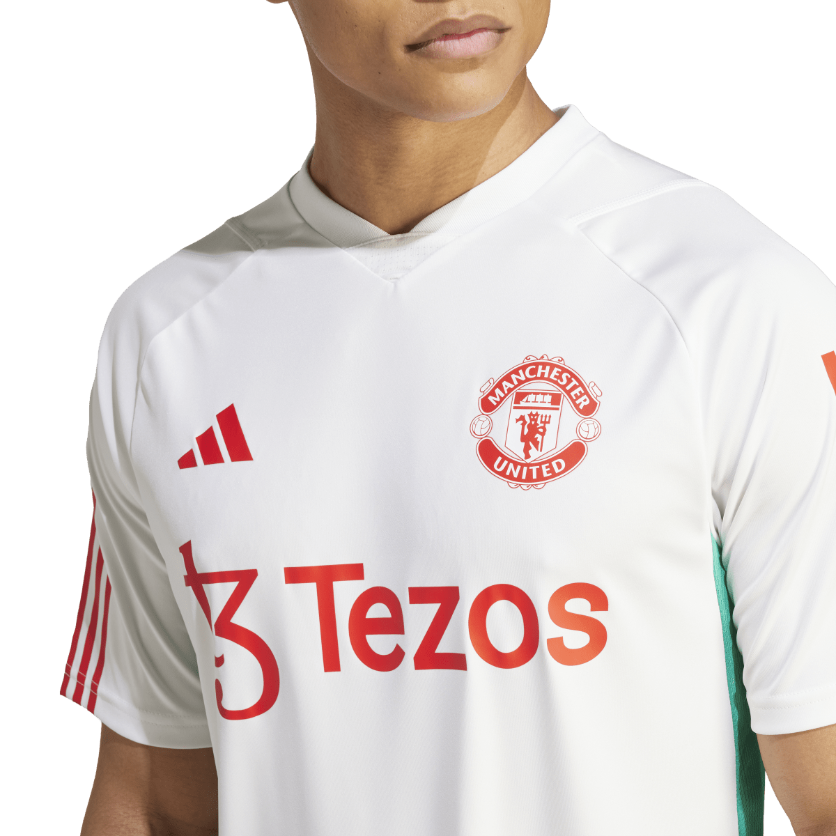 The training ground. That's where the hard work happens. And that's why this Manchester United training jersey has to be as performance-focused as the club's adidas match shirts. Created for flowing soccer, it includes moisture-absorbing AEROREADY and breathable mesh panels. Even that club crest is heat-transferred to reduce weight and maximize every last ounce of effort. Made with 100% recycled materials, this product represents just one of our solutions to help end plastic waste.
