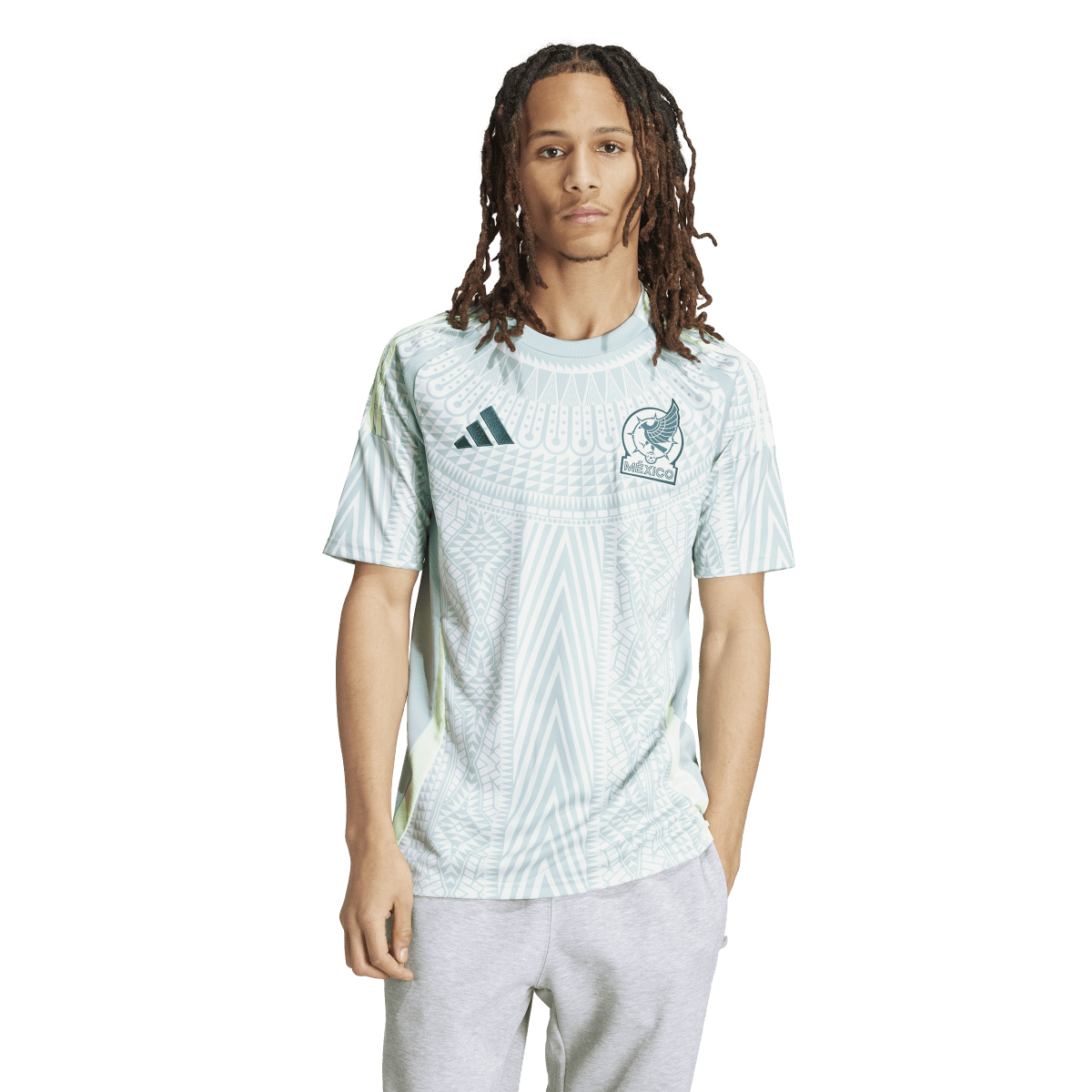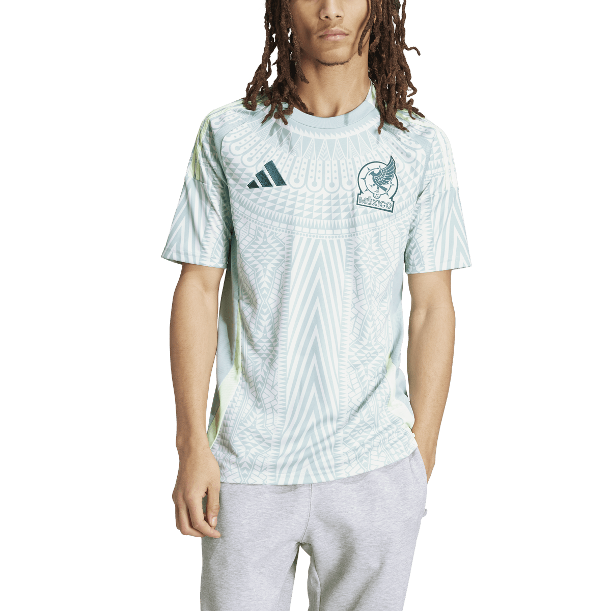 Created for powerful shows of support. Inspired by Mexico's coat of arms, this adidas away jersey stands out with rattlesnake skin-style graphics. Built to keep fans comfortable, it includes moisture-managing AEROREADY and mesh panels that offer targeted breathability. A woven team crest and eagle-serpent sign-off leave no doubt where your football allegiance lies. This product is made with 100% recycled materials. By reusing materials that have already been created, we help to reduce waste and our reliance on finite resources and reduce the footprint of the products we make.