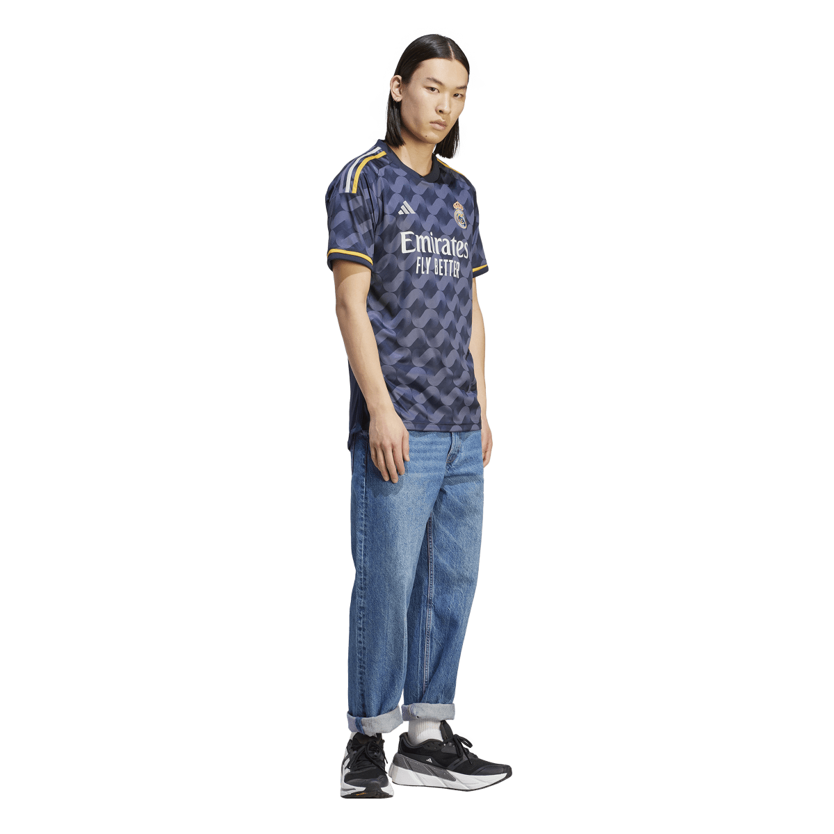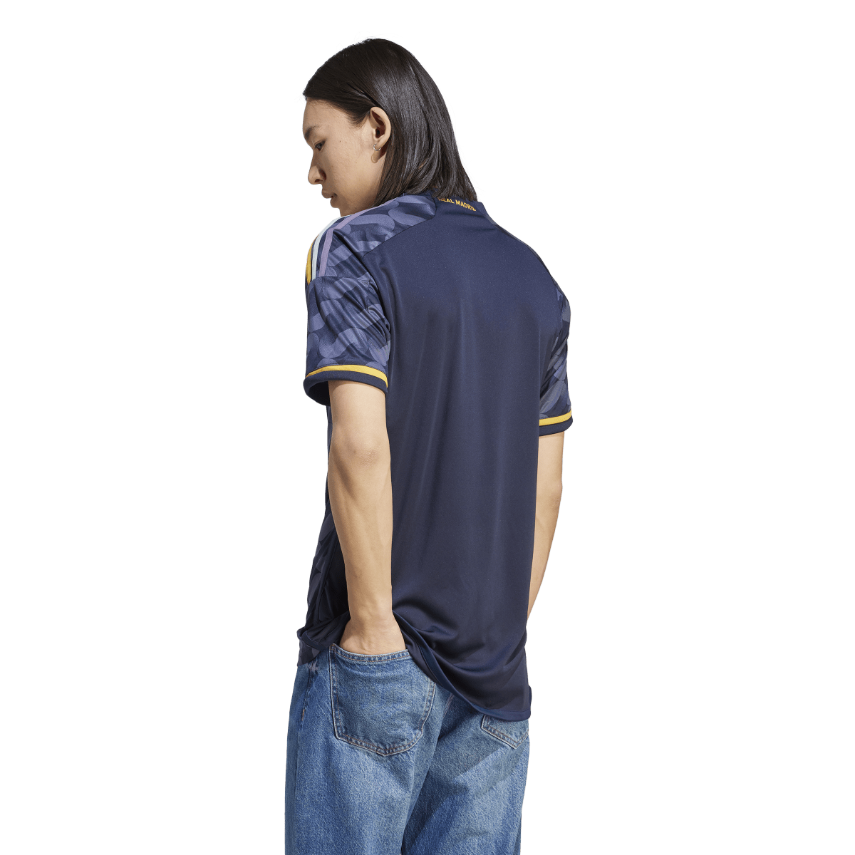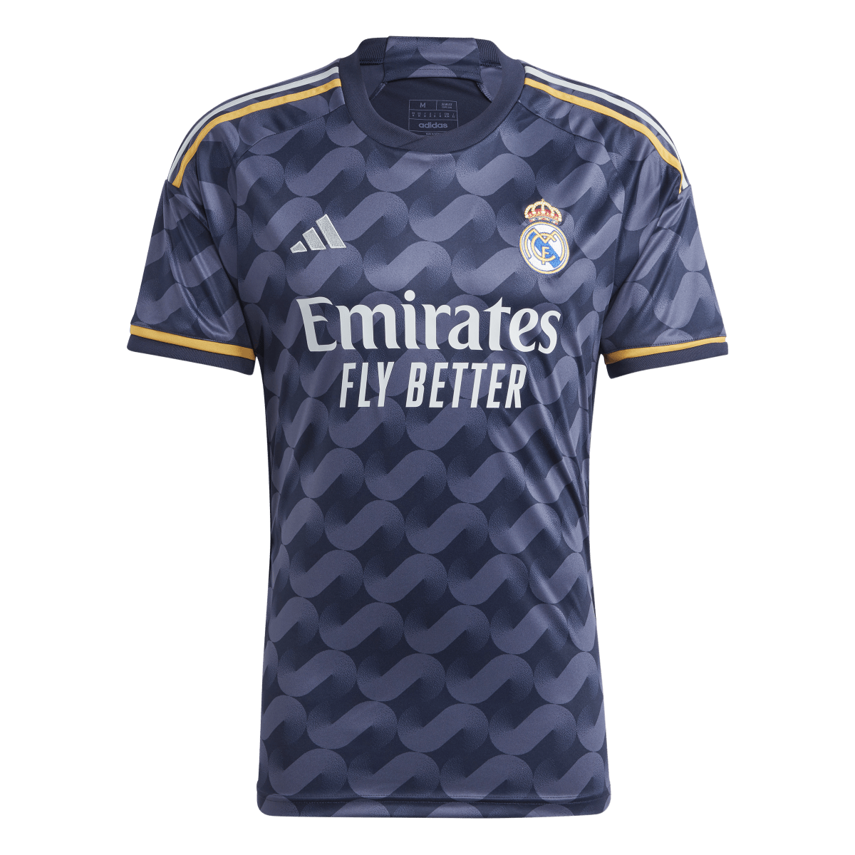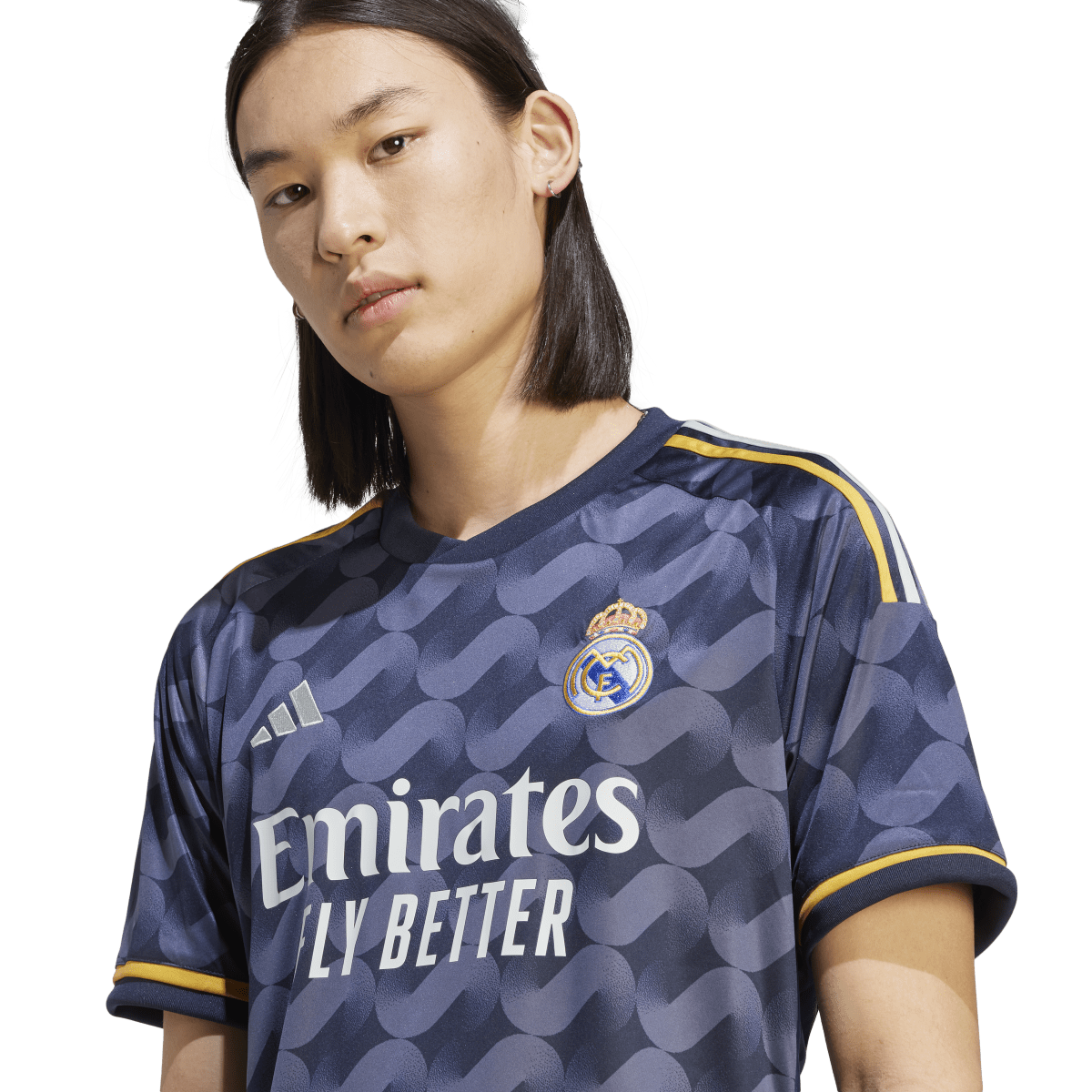 Flowing across the front of the Real Madrid 23/24 Away Jersey, repeating infinity symbols speak to the Real Madrid fans and their unwavering dedication to the club. It's also a reminder that match days are as much about the journey as they are the beautiful game.