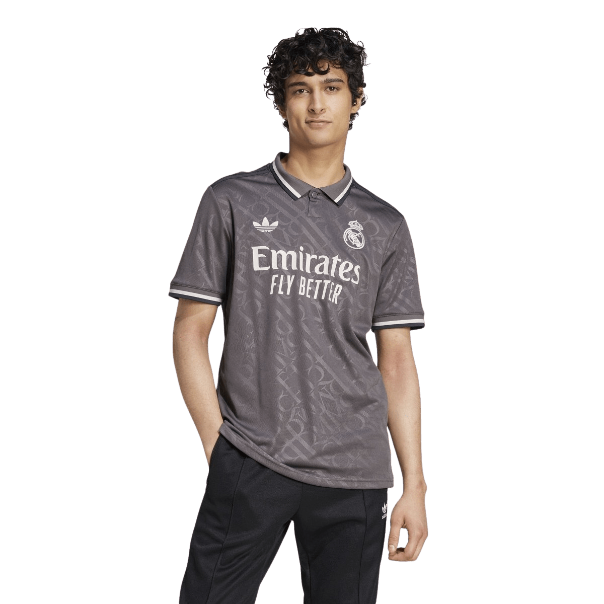 Elegance is their identity. The embossed "RMCF" monograms repeating across this juniors' Real Madrid third jersey borrow their distinctive look from the lettering used on traditional Madrid street signs. Standing out from the classy design, the iconic Trefoil returns to an adidas match shirt after a long break. Behind it all, AEROREADY keeps football fans dry and comfortable as they shout their support.
